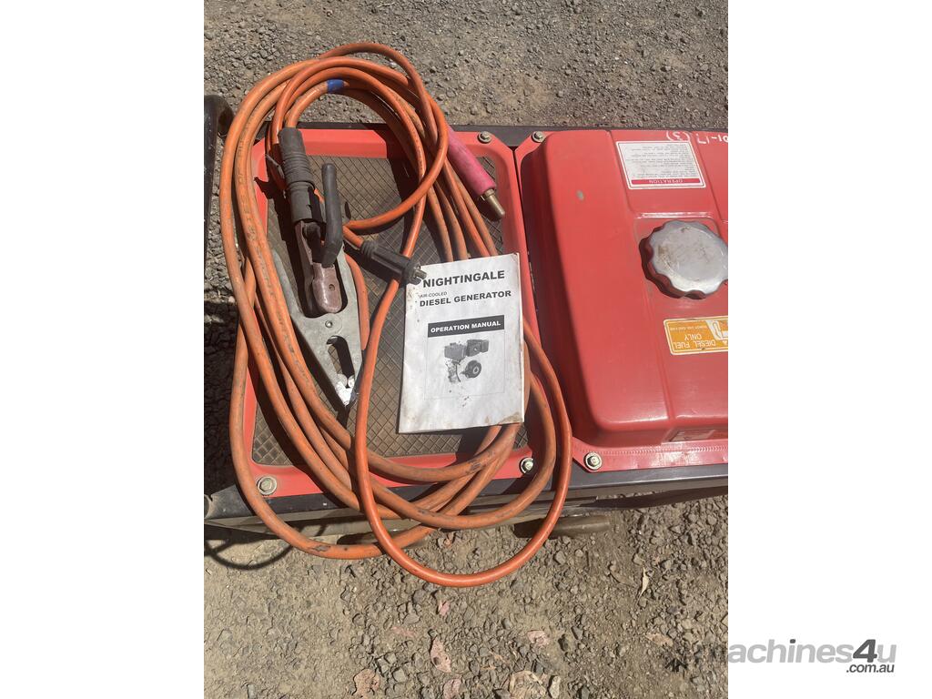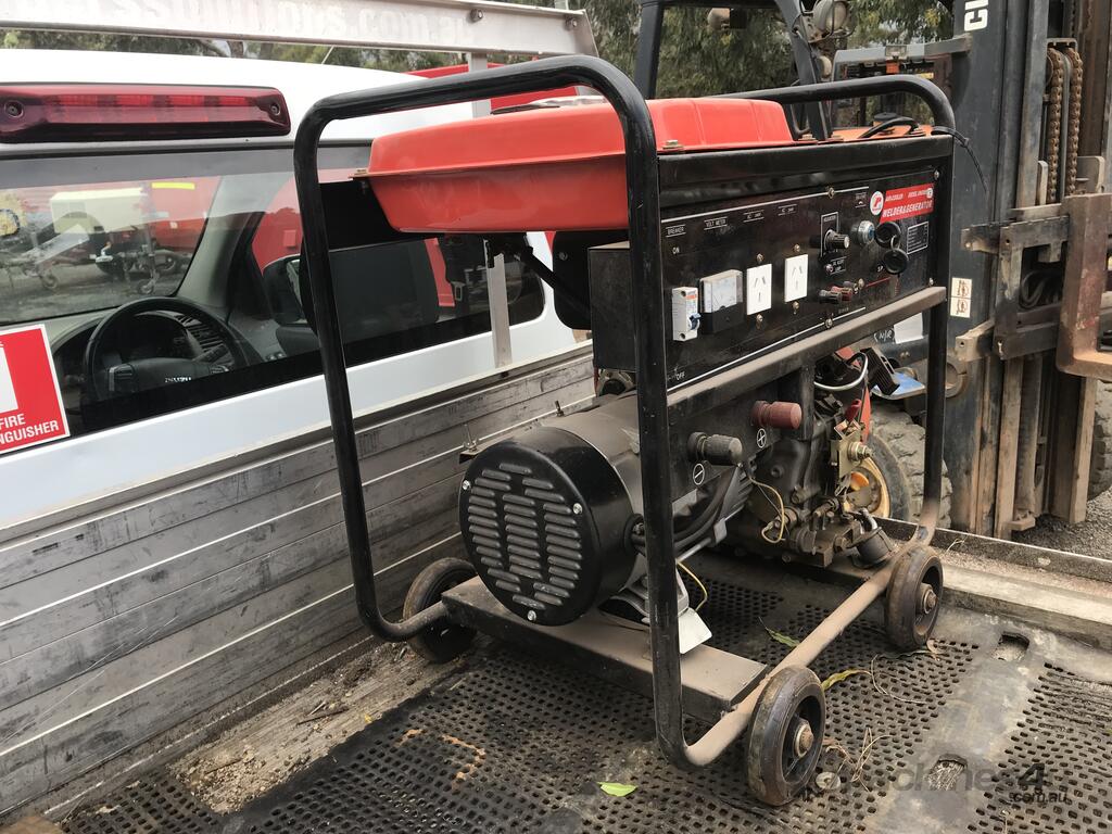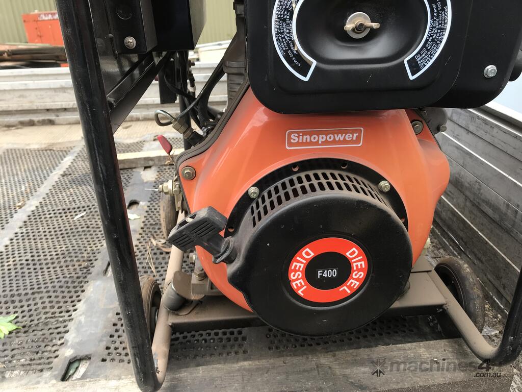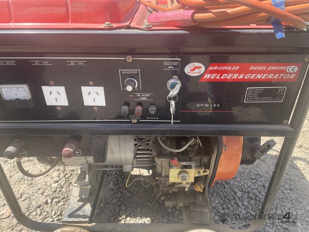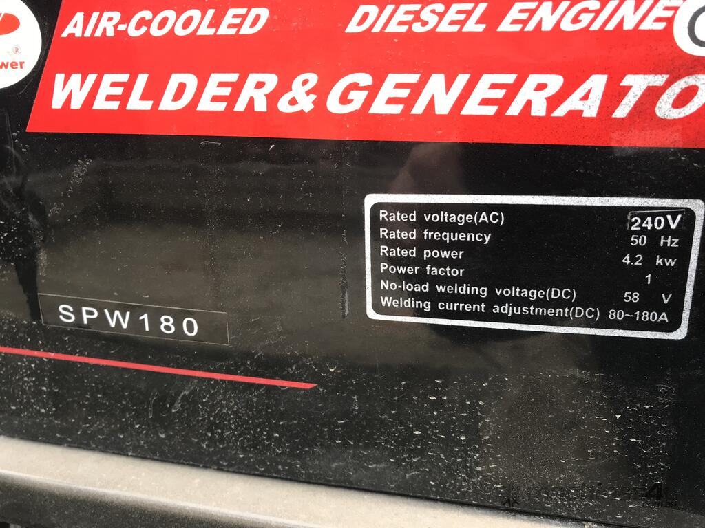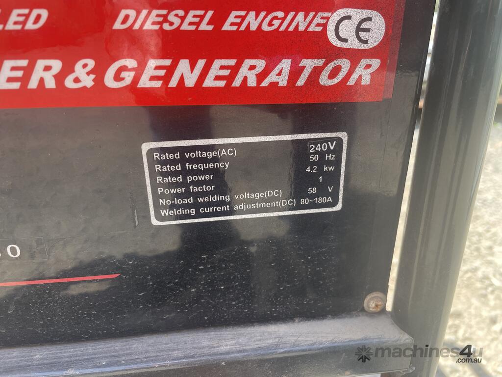 Sinopower, diesel fueled generator/welder, 180 amp of welding current and 4,200 watts of 240v AC. This machine has been run for demo purposes only, comes with leads and instruction manual