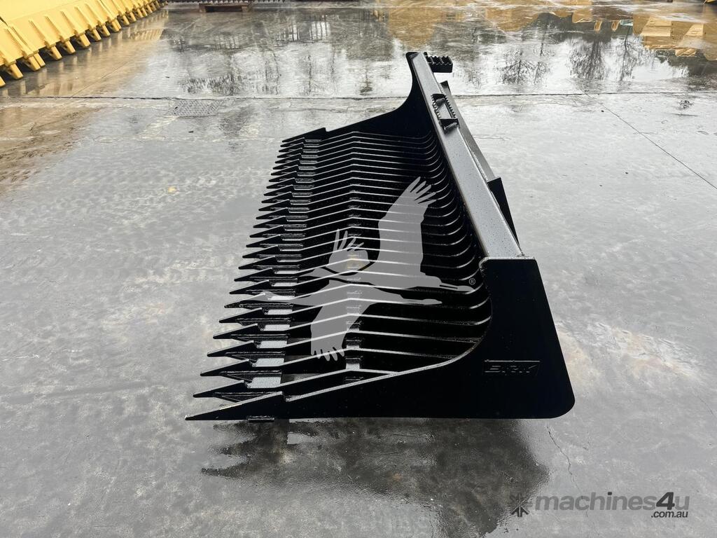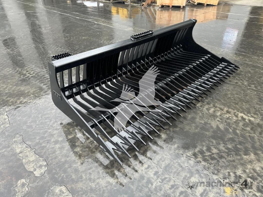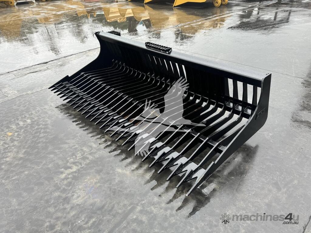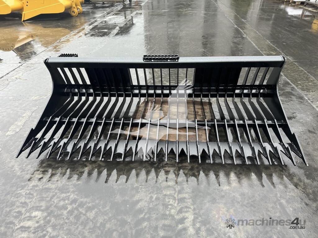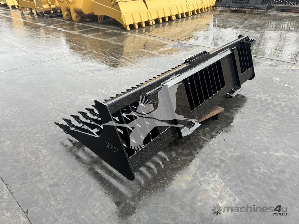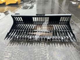 Bucket with spaced skeletal designed for sorting and separating rocks, debris, and finer materials from soil. Ideal for land clearing, demolition, and material handling. Different sizes are available.