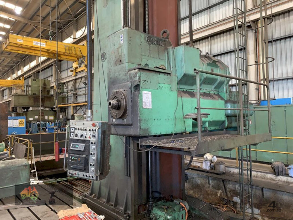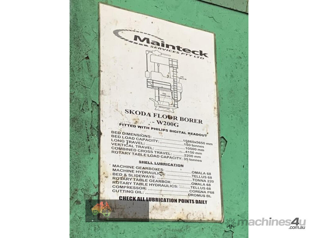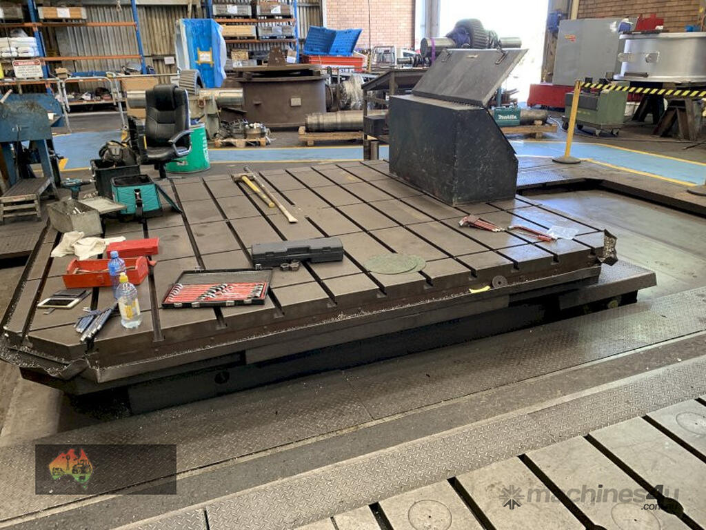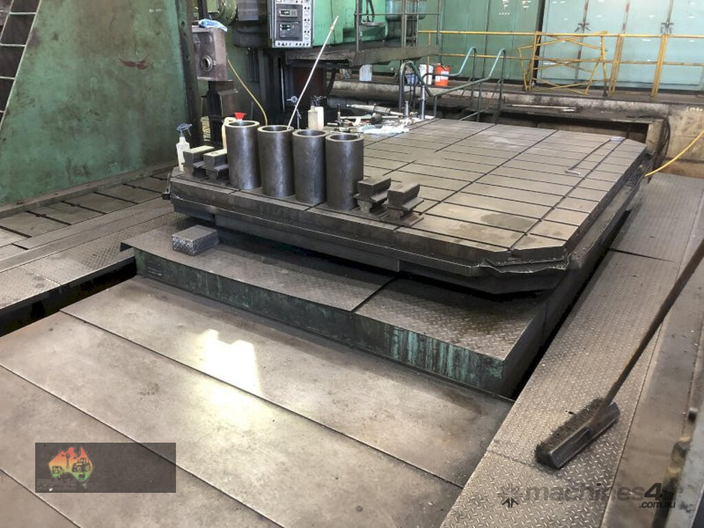 Floor borer 10-metre travel, 4-metre vertical travel, 200mm ram-type spindle, updated electrics complete with vertical head. Rotary table specs: 35-tonne capacity with table rotation and traverse table size 2.5m x 2m *Crane required to load at buyers expense