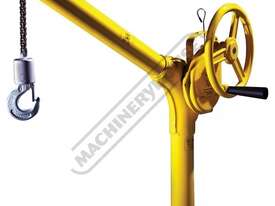 The Sky Hook Lifting Device Model 8500 Series prevents back injuries and is ideal for lifting chucks, vices and large pieces of material onto lathes, mills, benches and other equipment. Weighing only 10.4kg, Sky Hook Model 8500 Series pivots 360° for precision positioning. Safe and simple to use, this model easily lifts up to 227kg. With a base designed for your specific tool holder, its one-handed operation does the work of four people in a single step.