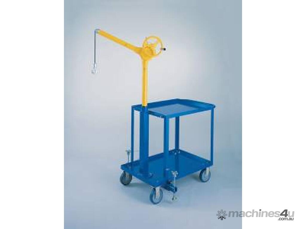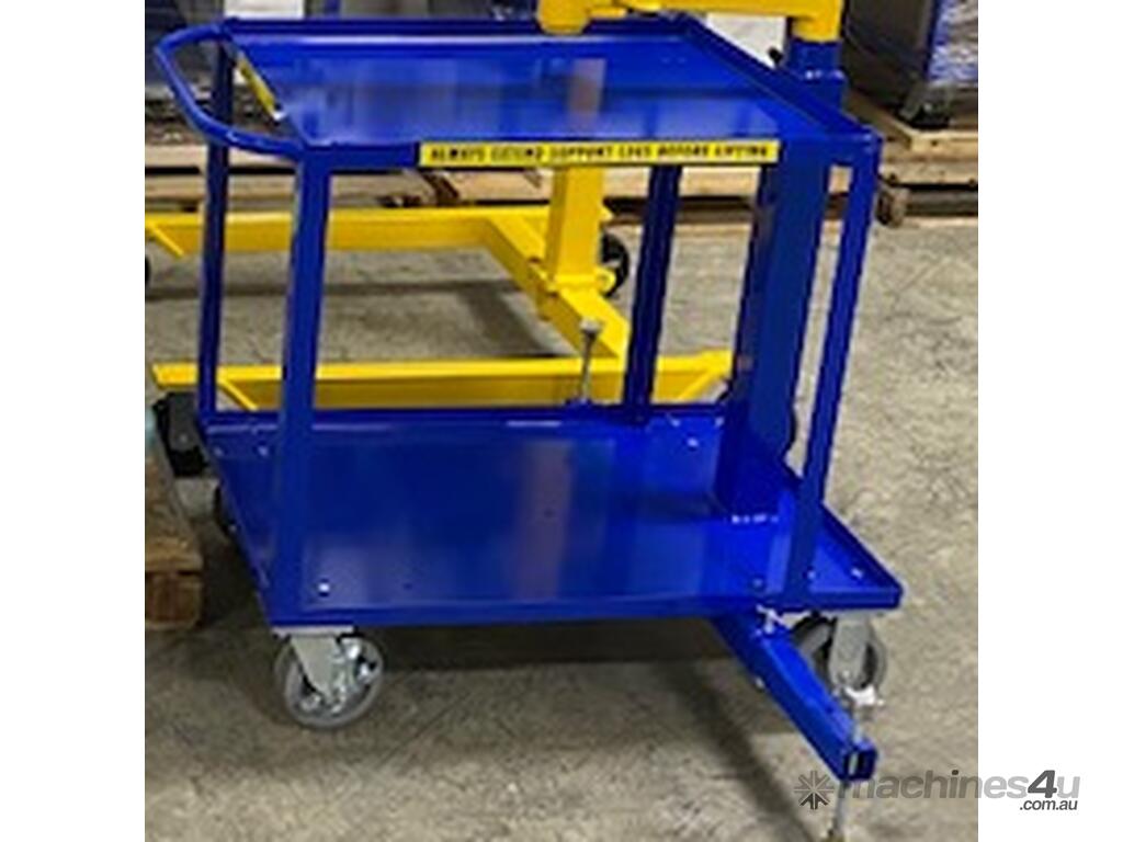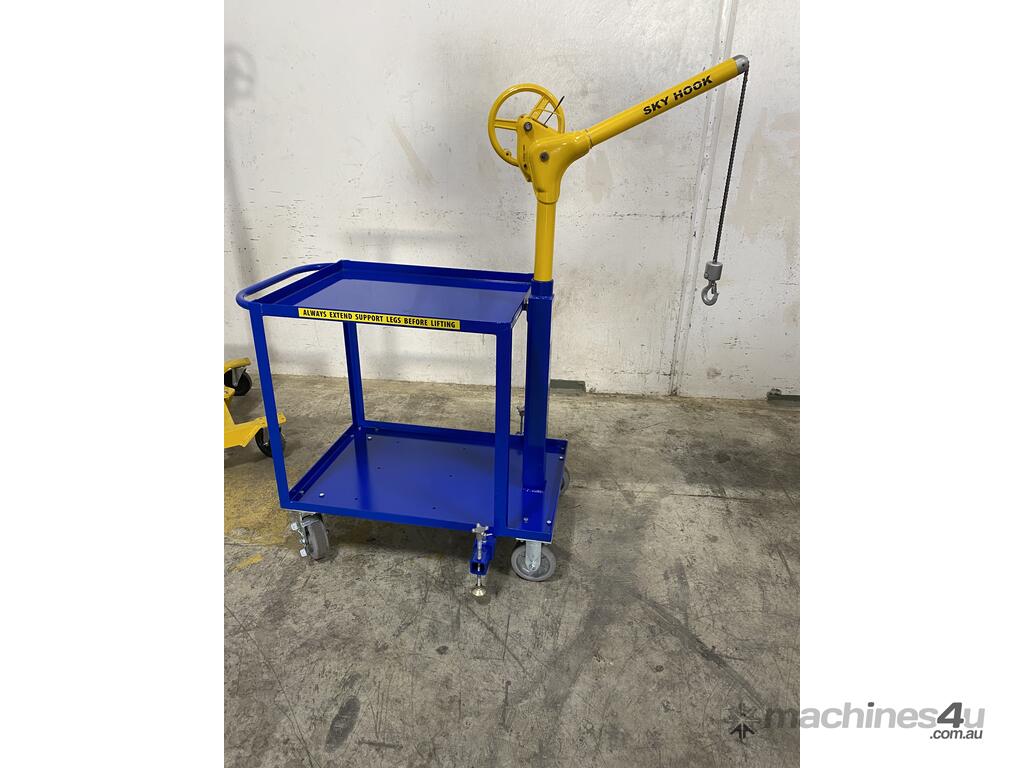 Lifts, transports, and stores machine accessories, material, or heavy awkward items.