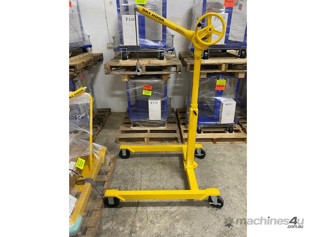 Sky Hook model 8560 with Cherry Picker Base is perfect for liftin heavy or awkward objects from their shipping or packing materials because its one-handed operation does the work of four people. Smaller and more agile than the traditional cherry picker model, its compact design makes it perfect for tight, hard to reach areas.