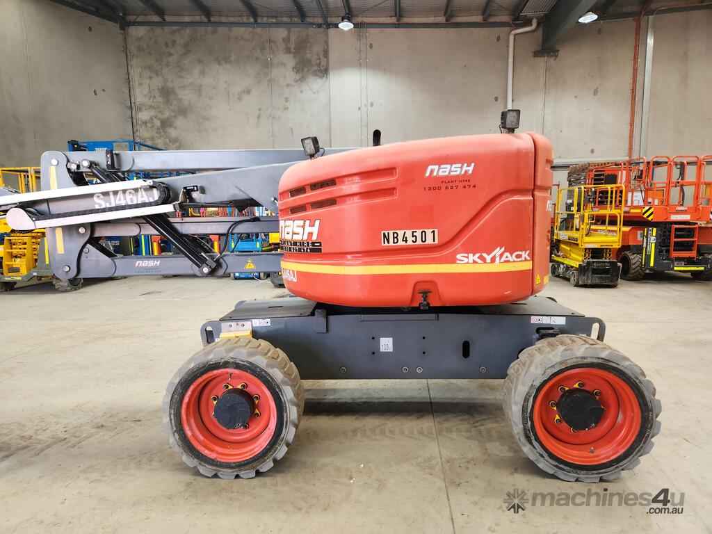The Skyjack 46AJ is a diesel articulating boom. Diesel articulated booms are used for a wide variety of outdoor applications, generally where the user needs to go up and over an obstacle. Users include steel erectors, building contractors, roof surveys, painting & decorating, CCTV installation, window cleaning, etc.