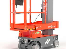 The Skyjack SJ12E is a compact electric vertical mast lift designed for safe and precise work in tight indoor spaces. Its narrow design and zero inside turning radius make it ideal for warehouses, shopping centres, maintenance work, and facility management tasks.