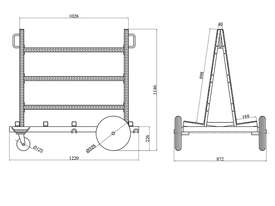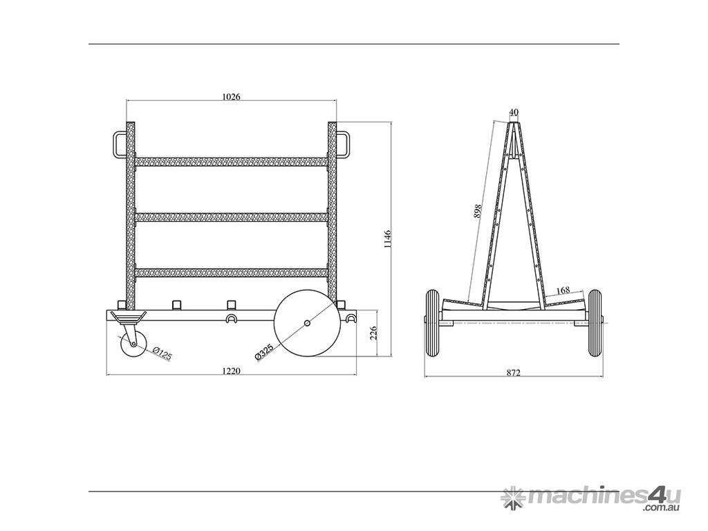 Popular in factories and on building sites. Rubber is provided on frame surfaces for maximum protection. Heavy-duty wheels allow easy maneuvering of fully loaded carts.