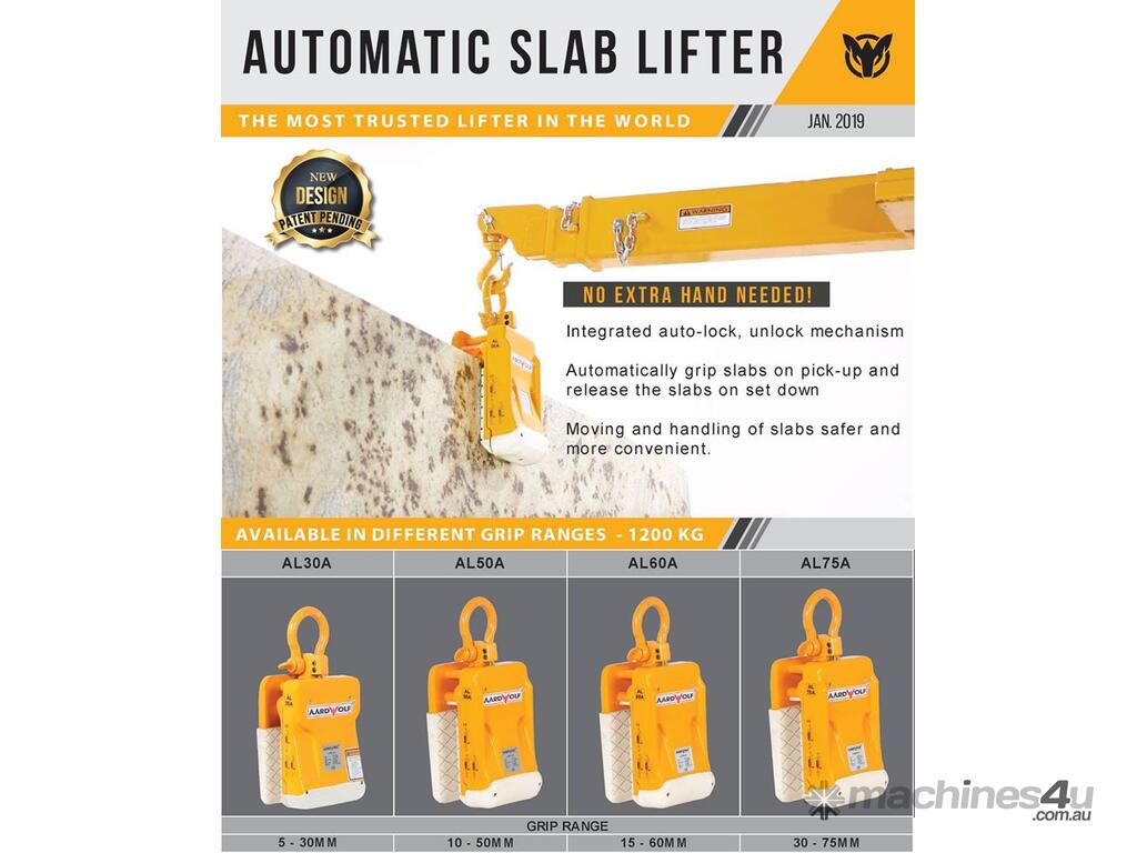 Secure: The Aardwolf clamps grip marble and granite slabs firmly. The Aardwolf Slab Lifter Automatic 50A has a force-multiplying factor of approximately 2.5 to 1.