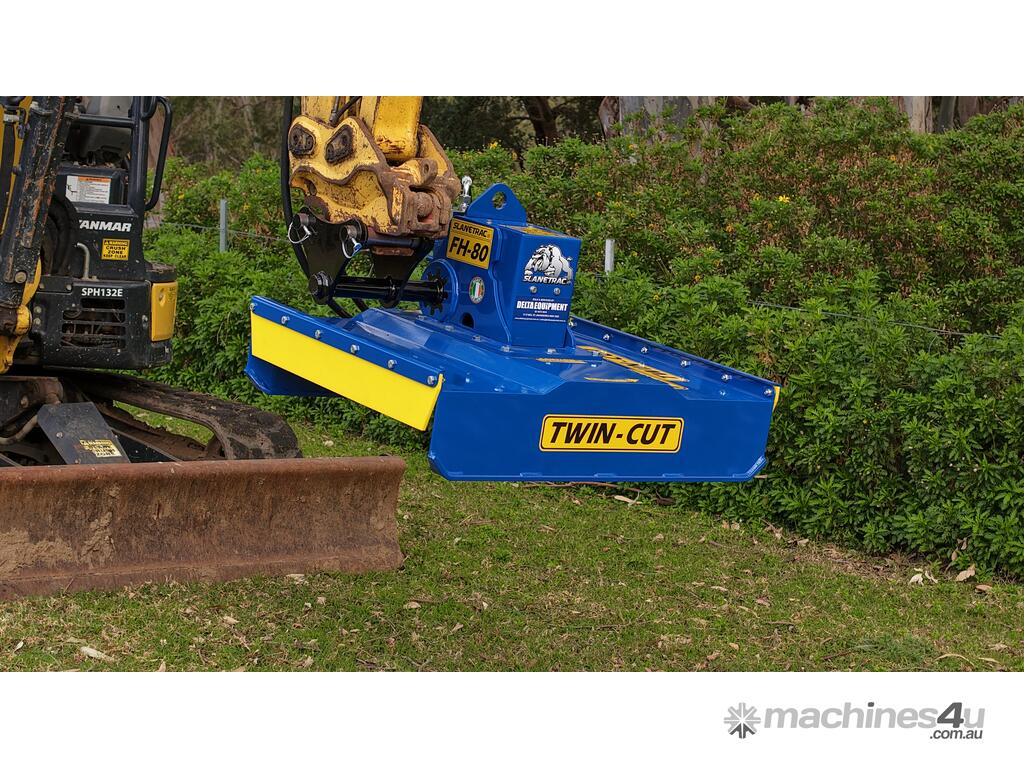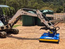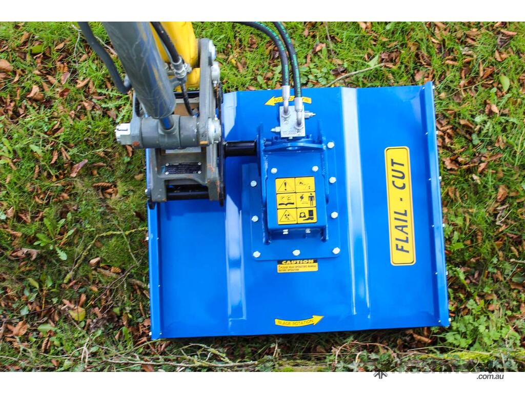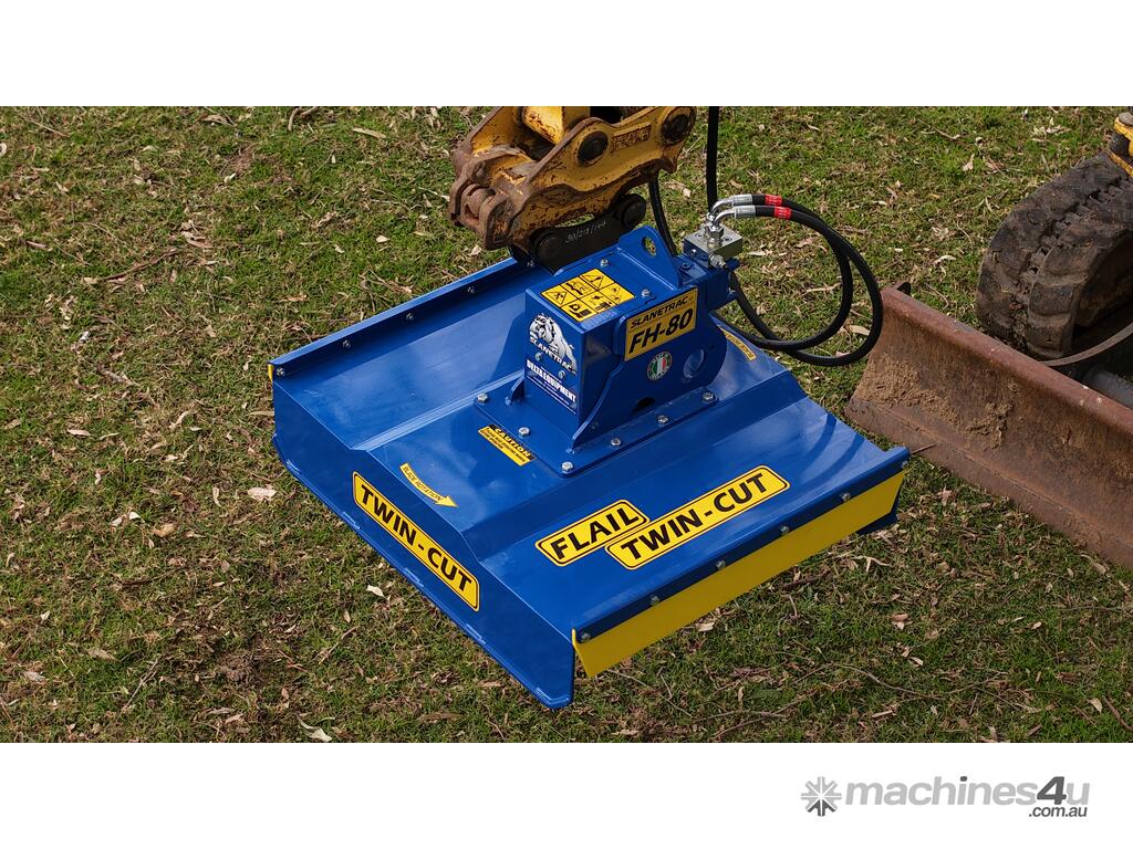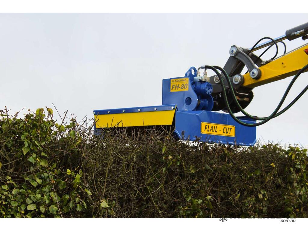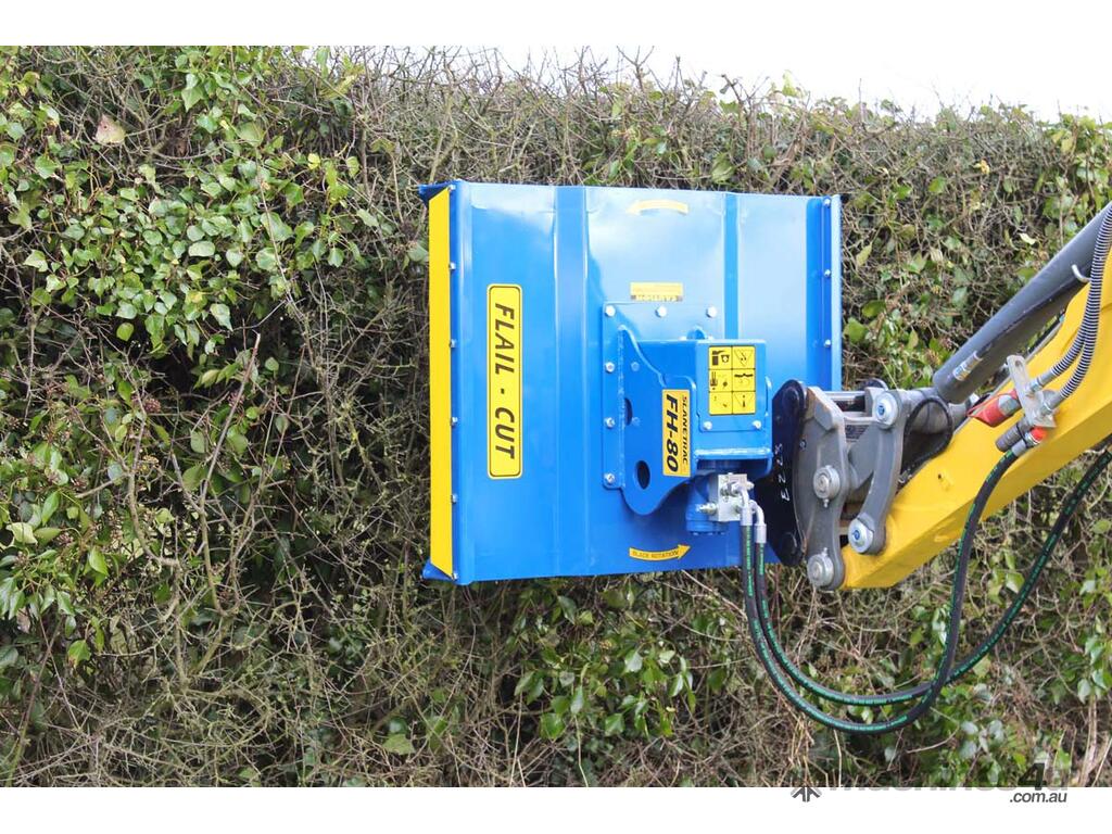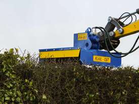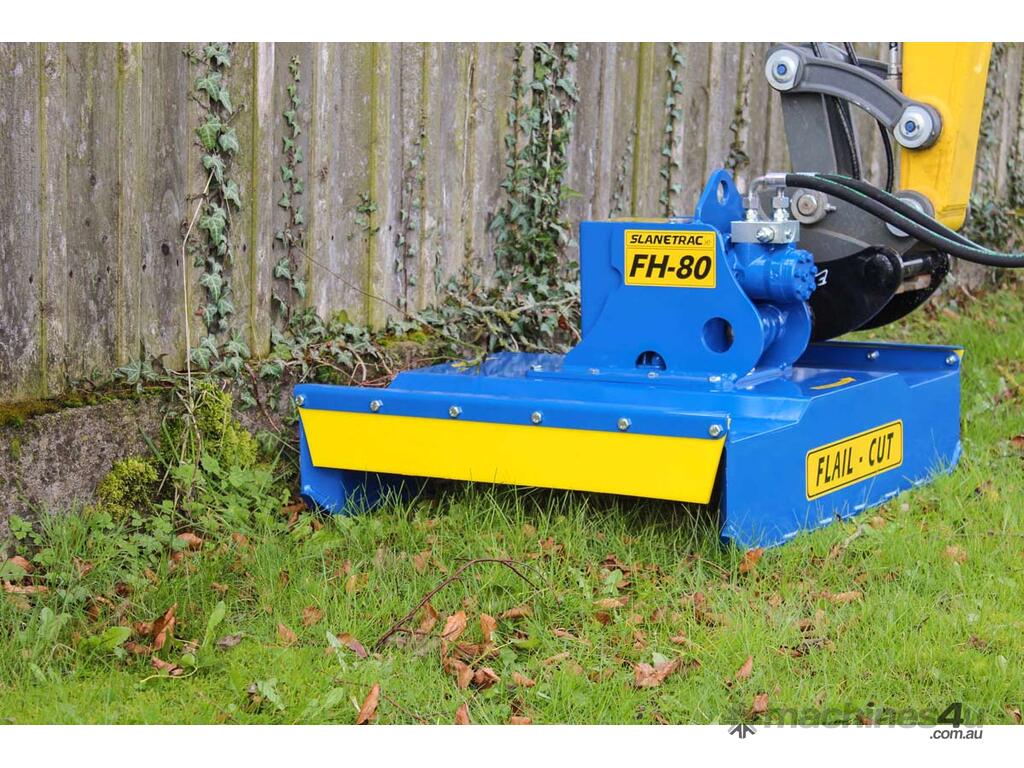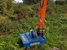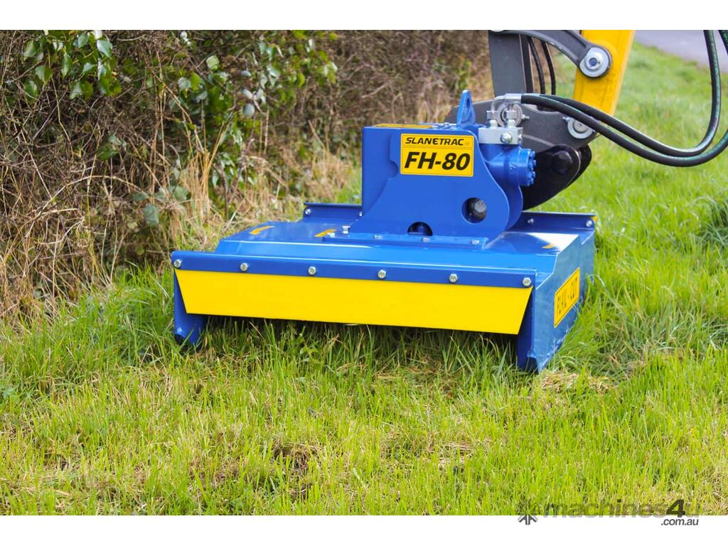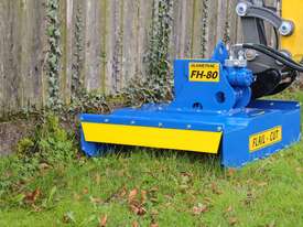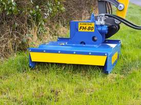 The body of the slasher is made from durable thick steel. The motor drives the blades via a 90 degree ratioed gearbox, allowing the attachment to run without massive draw of oil flow from the machine. The FH80 is fitted with a pressure relief valve to protect the motor from excessive pressure, and as such does not require a case drain.