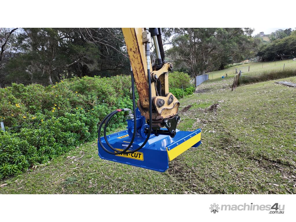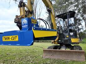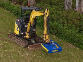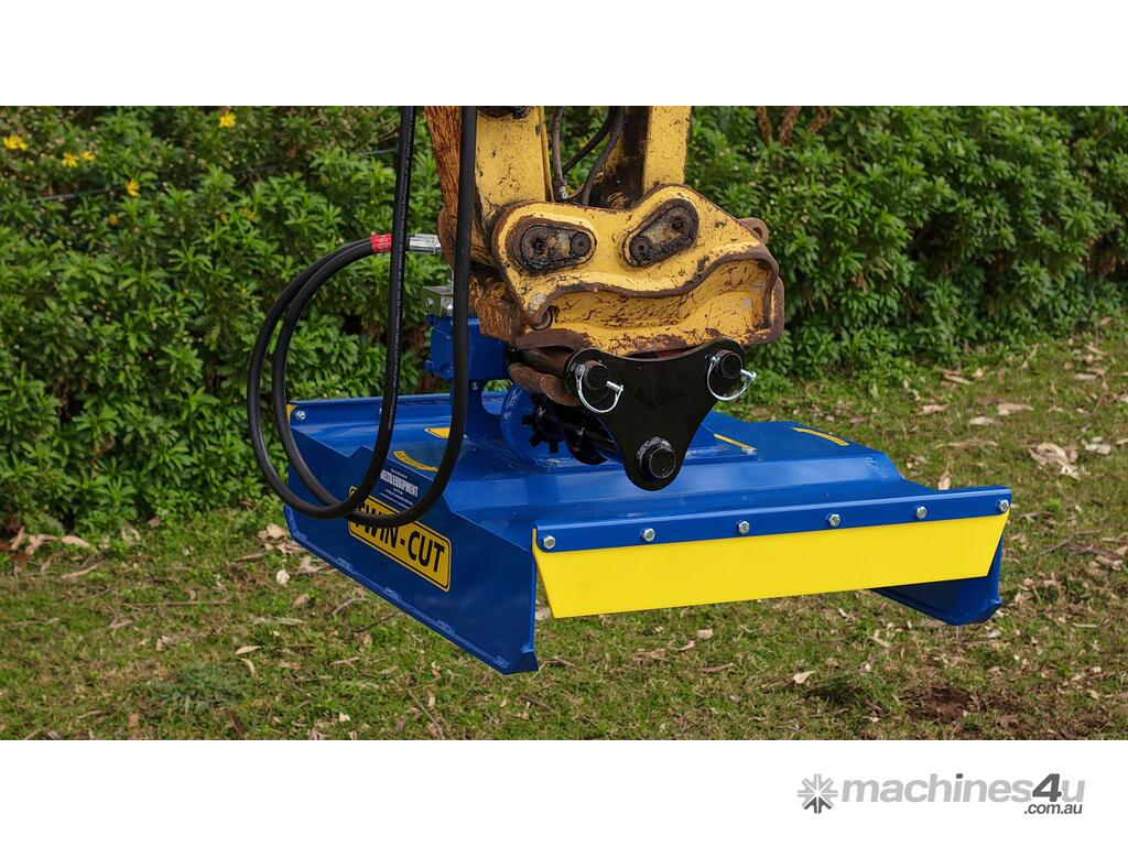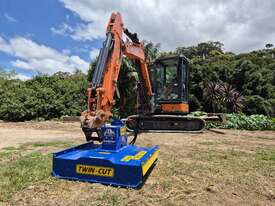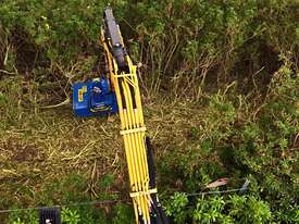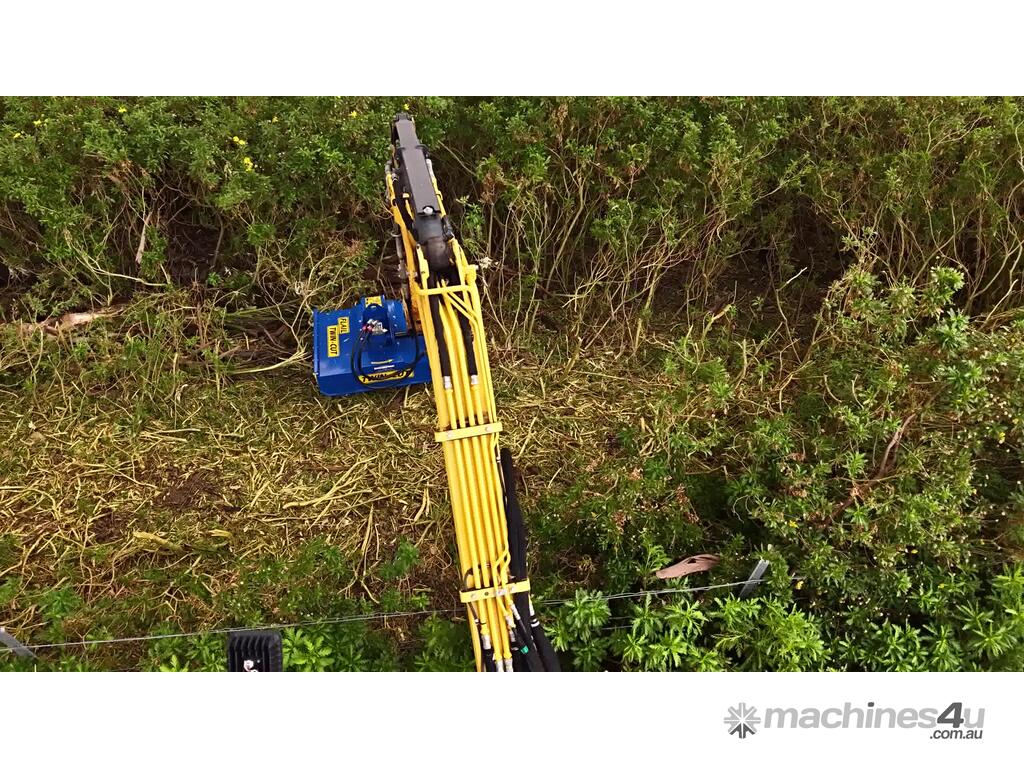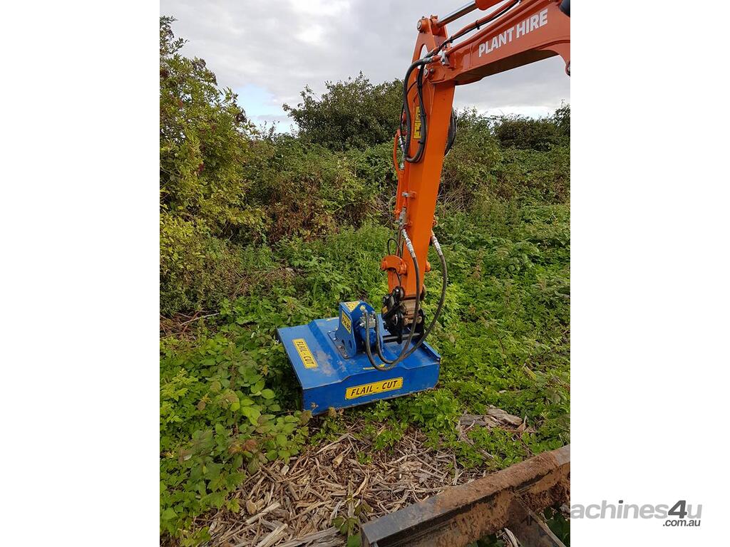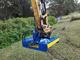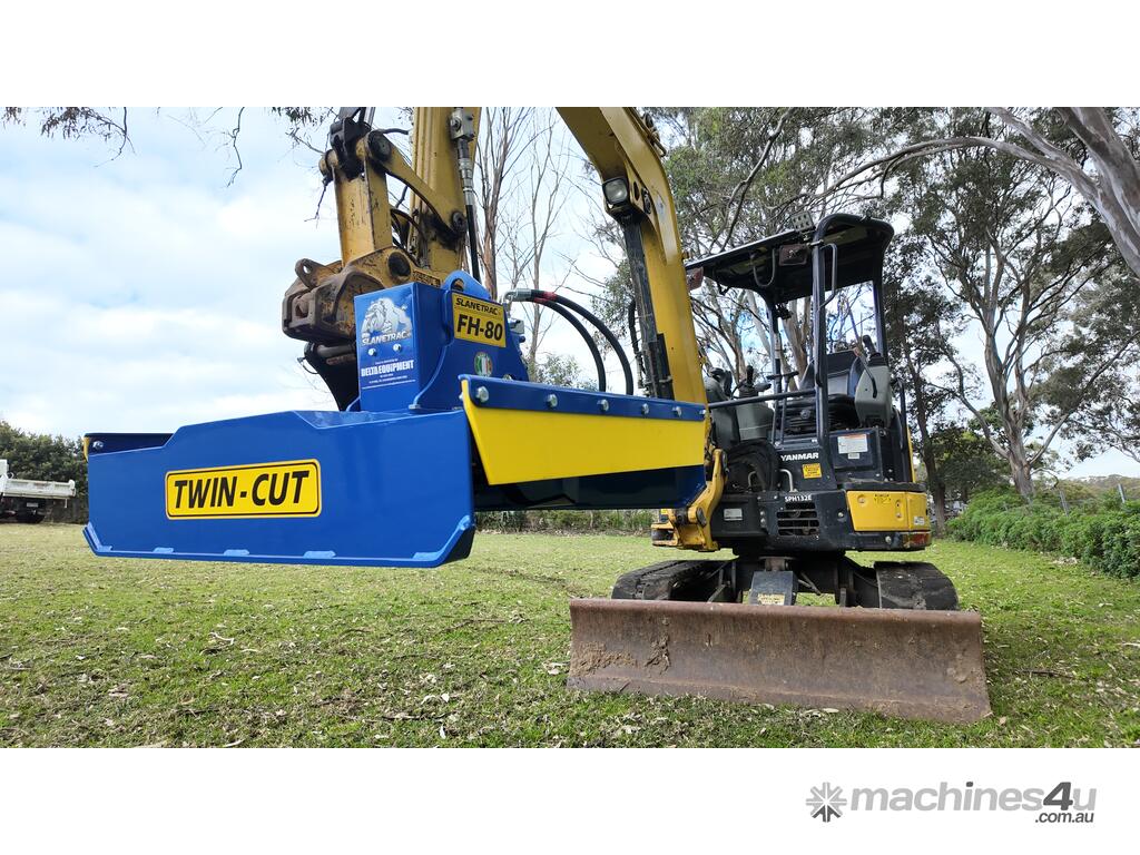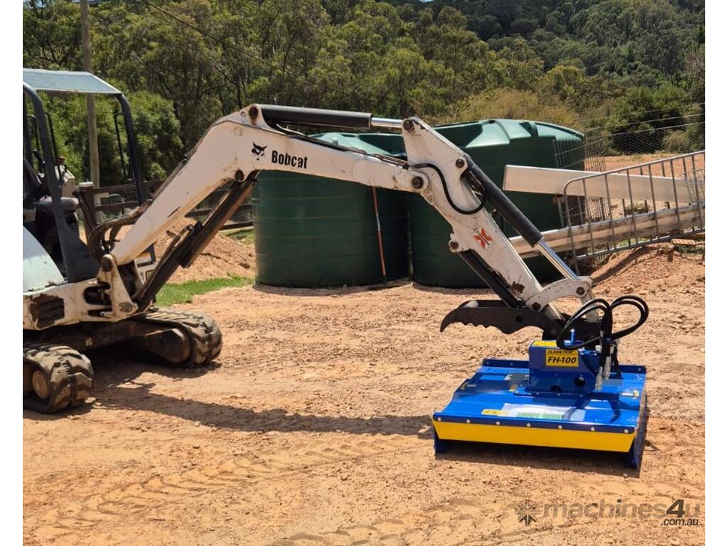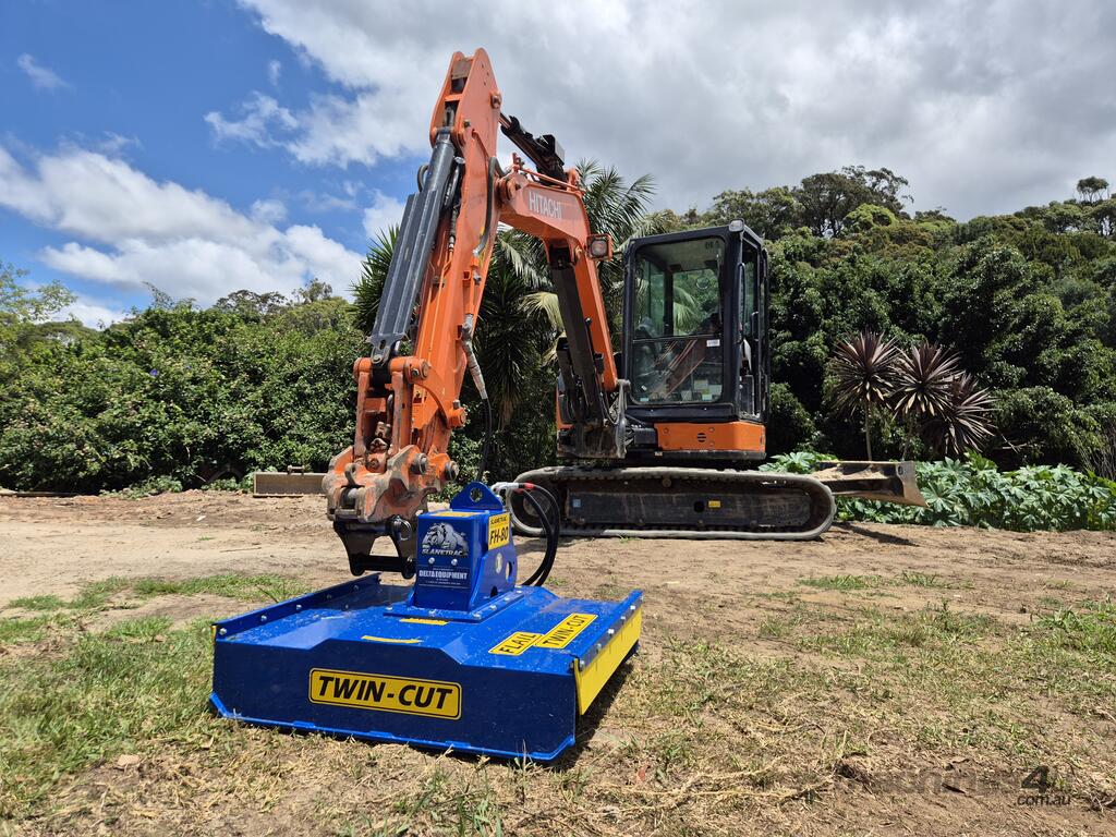 The body of the slasher is made from durable thick steel. The motor drives the blades via a 90 degree ratioed gearbox, allowing the attachment to run without massive draw of oil flow from the machine. The FH80 is fitted with a pressure relief valve to protect the motor from excessive pressure, and as such does not require a case drain.