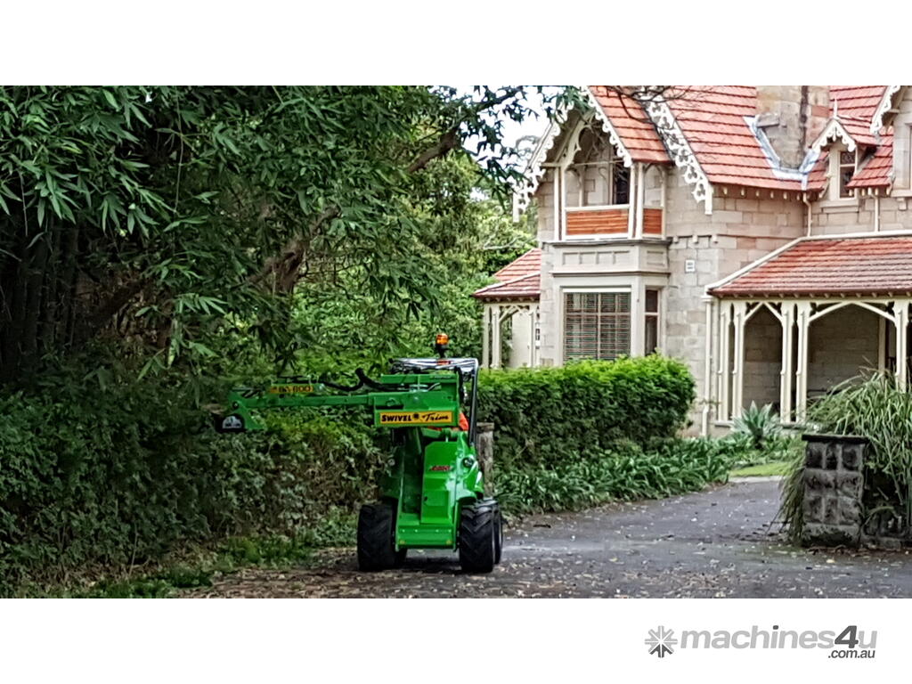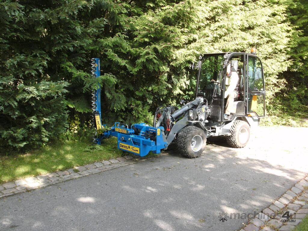 With your loader and cutter bar combination you get a neat and even cut at height. By removing one pin, you can easily swivel the head to the opposite side. This allows you to cut down behind fences and it also allows you to cut into corners. This operation is very difficult with other hedge cutters.