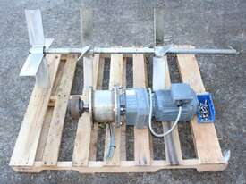 Slow Speed Electric Mixer with stainless steel shaft dia 38mm x 1400mm long, 3 x paddle blade, driven by a "WEG" 3 phase 1.5kw 47rpm output geared motor