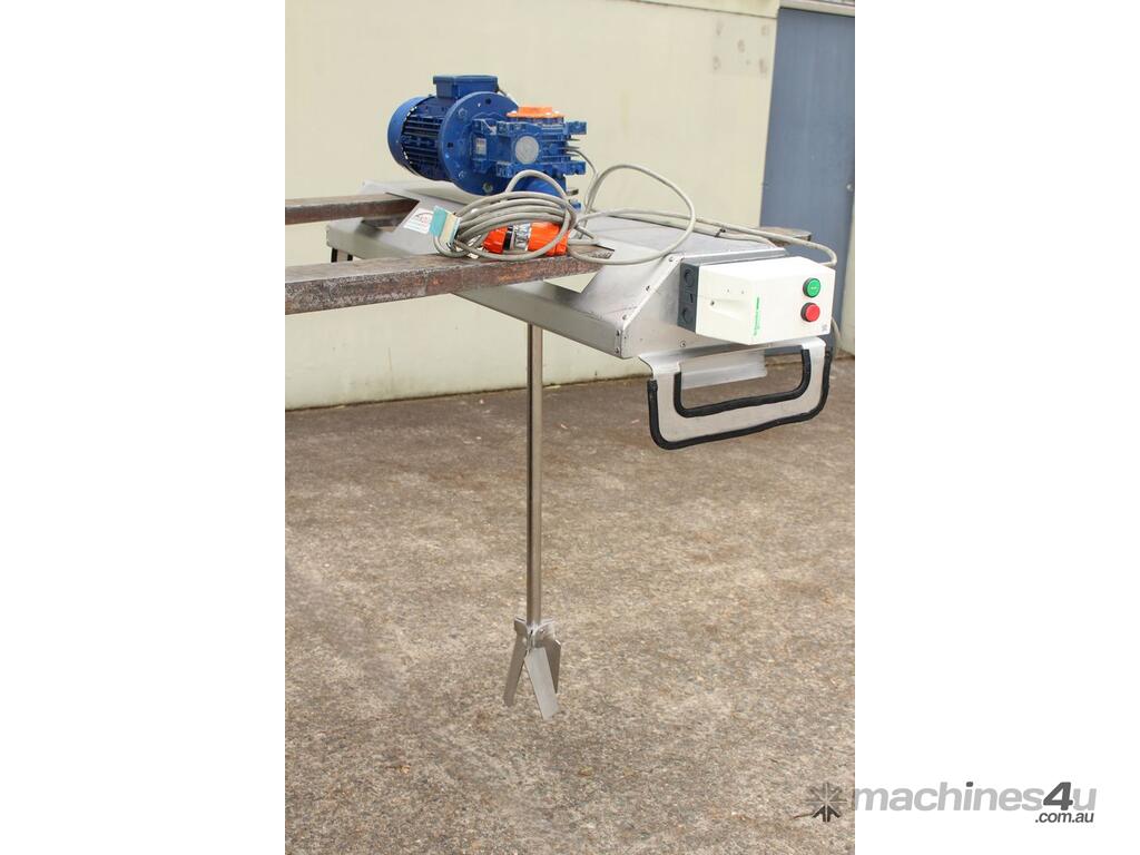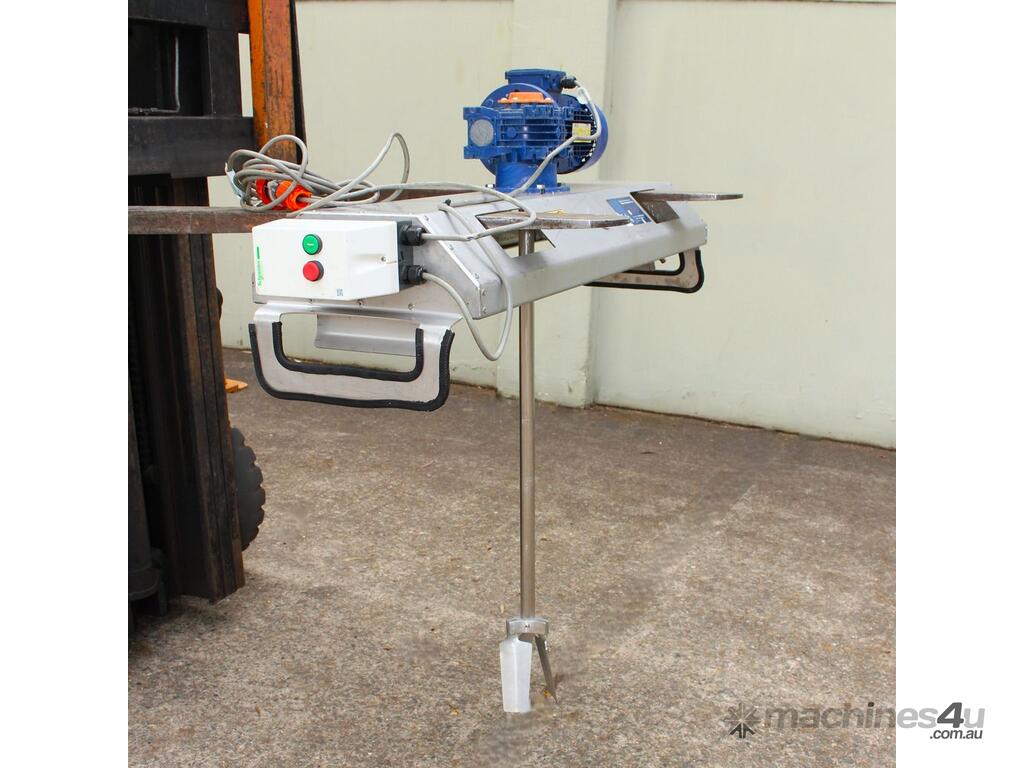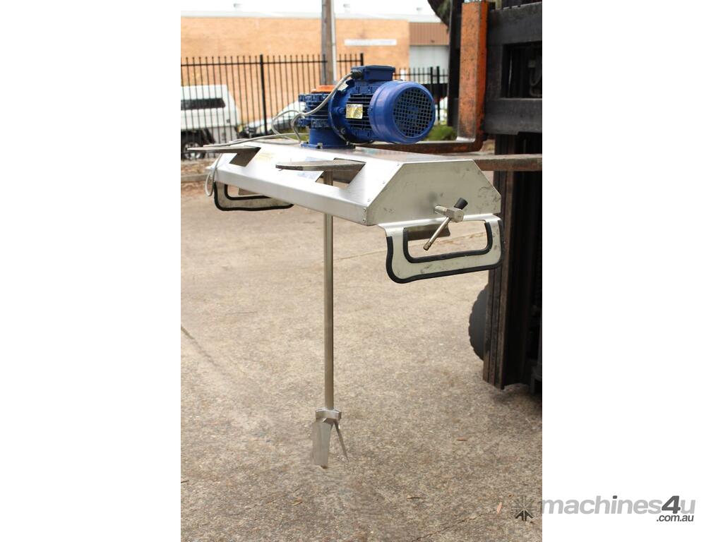S/S IBC Bridge Mount Mixers, "Mixquip Teralba" stainless steel bridge, mixer driven by 3 phase 2.2kw 200rpm geared motor, 400mm dia folding impeller