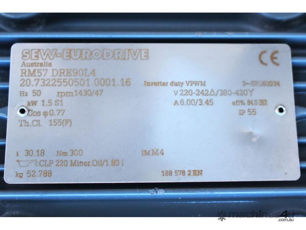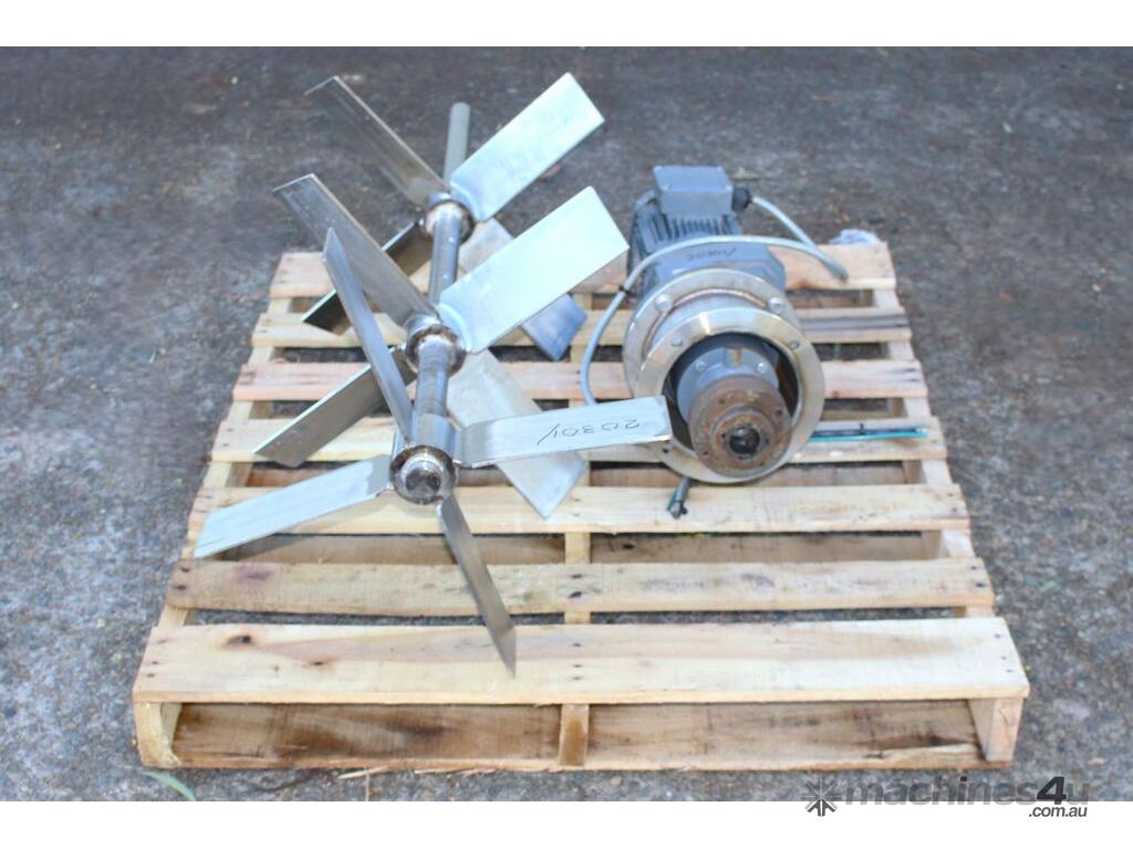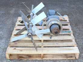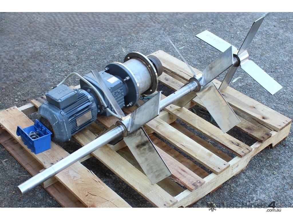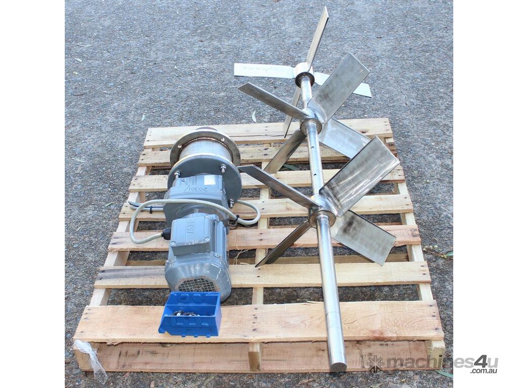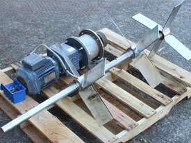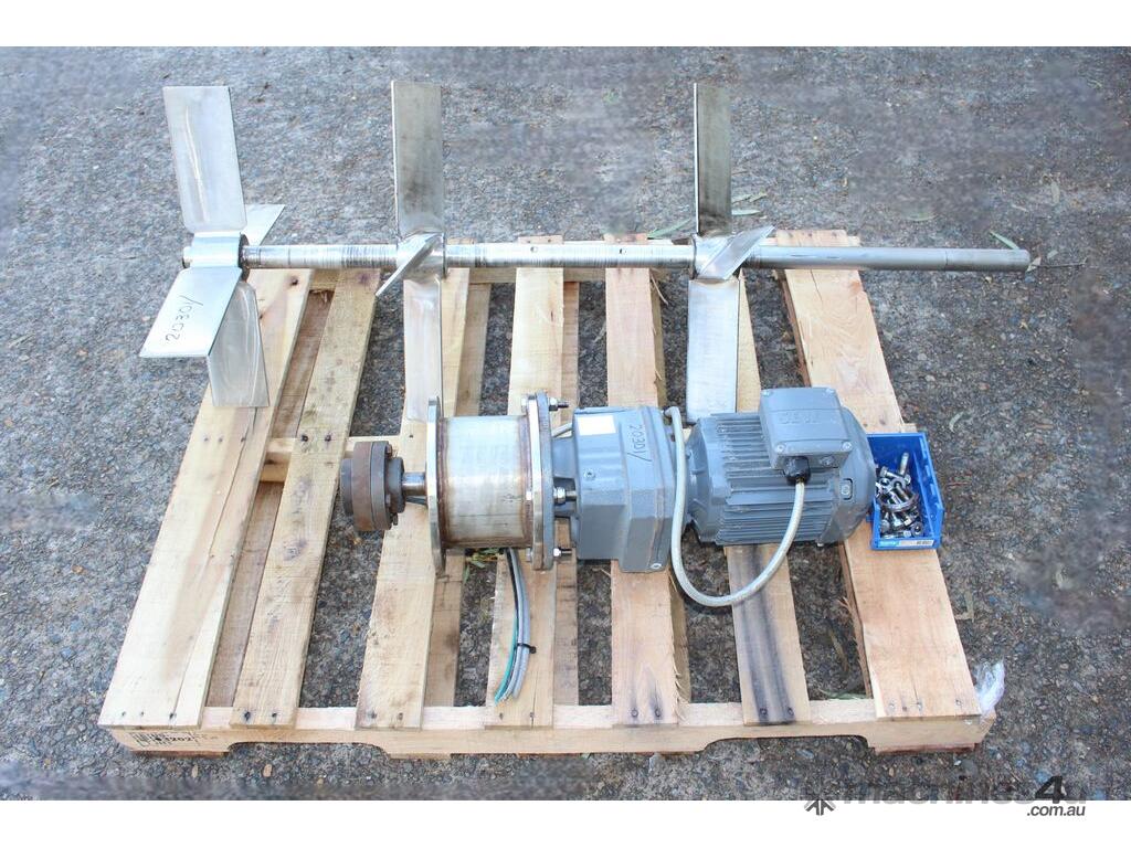 Slow Speed Electric Mixer with stainless steel shaft dia 38mm x 1400mm long, 3 x paddle blade, driven by a "WEG" 3 phase 1.5kw 47rpm output geared motor