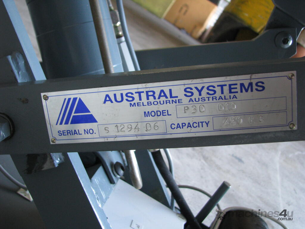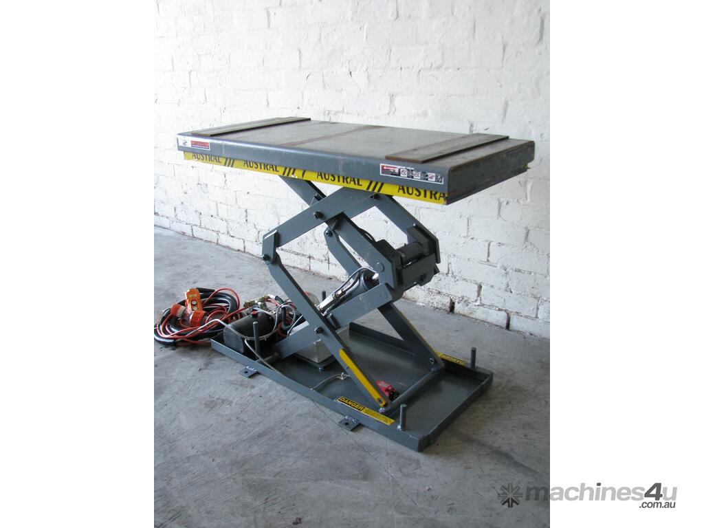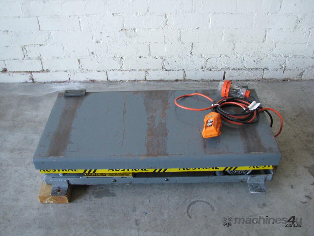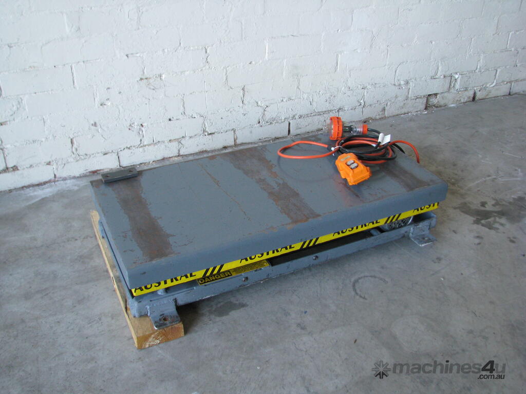 This scissor lift is compact, strong and sturdy. It is in great working condition. It reaches a max height of 70cm, can lift up to 450kg and runs off 3 phase power.