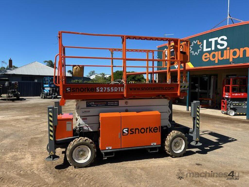 The Snorkel S2755RTE electric narrow scissor lift is designed to be ultra-compact for outdoor work in confined spaces. Long-lasting lithium batteries mean clean and quiet operation that can be used indoors or outdoors. Equipped with hydraulic outriggers as standard, the S2755RTE features automatic leveling on uneven ground with excellent off-road performance.