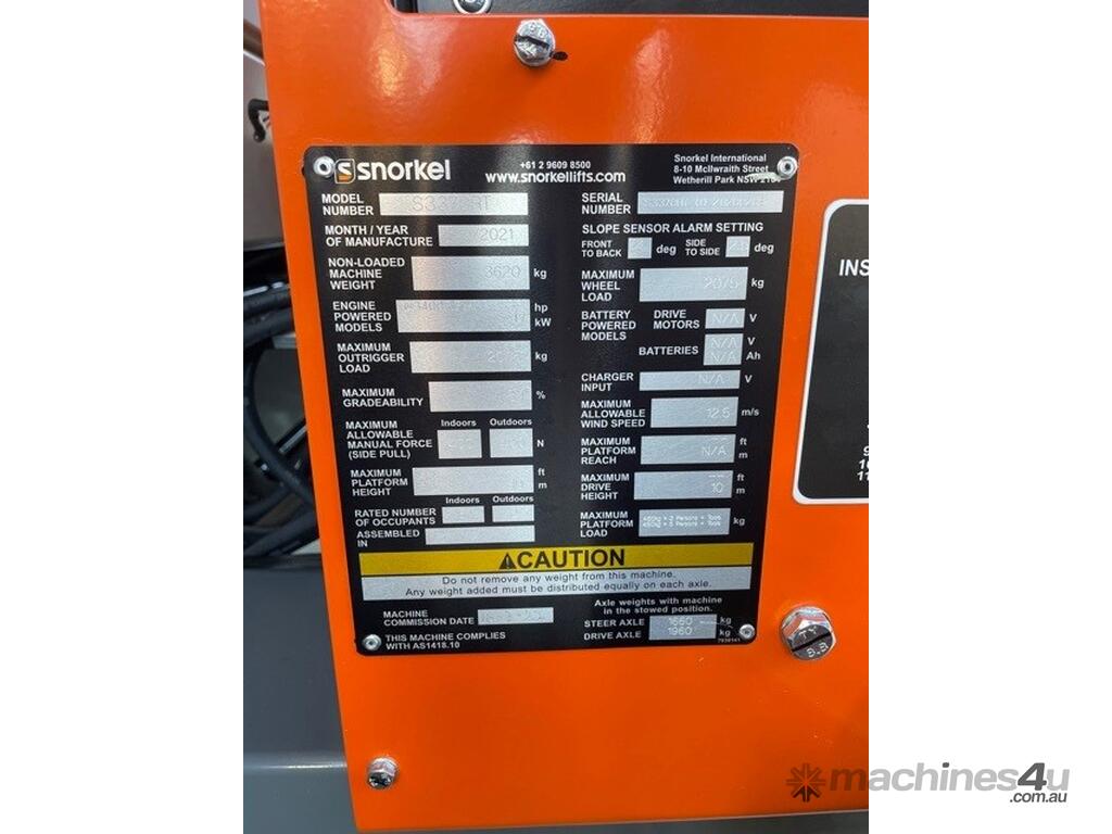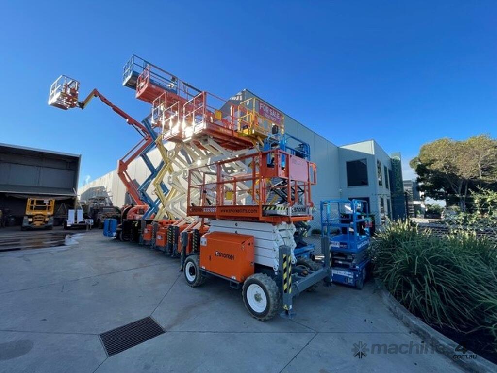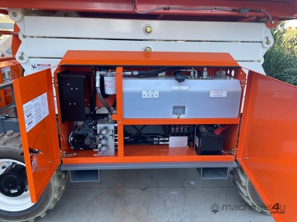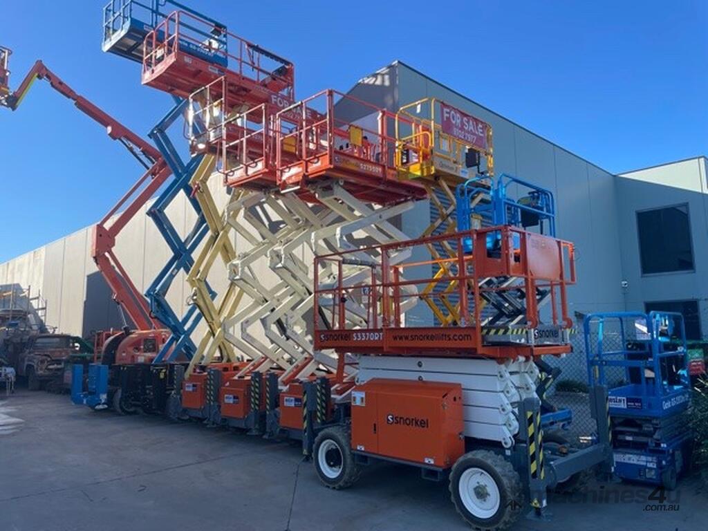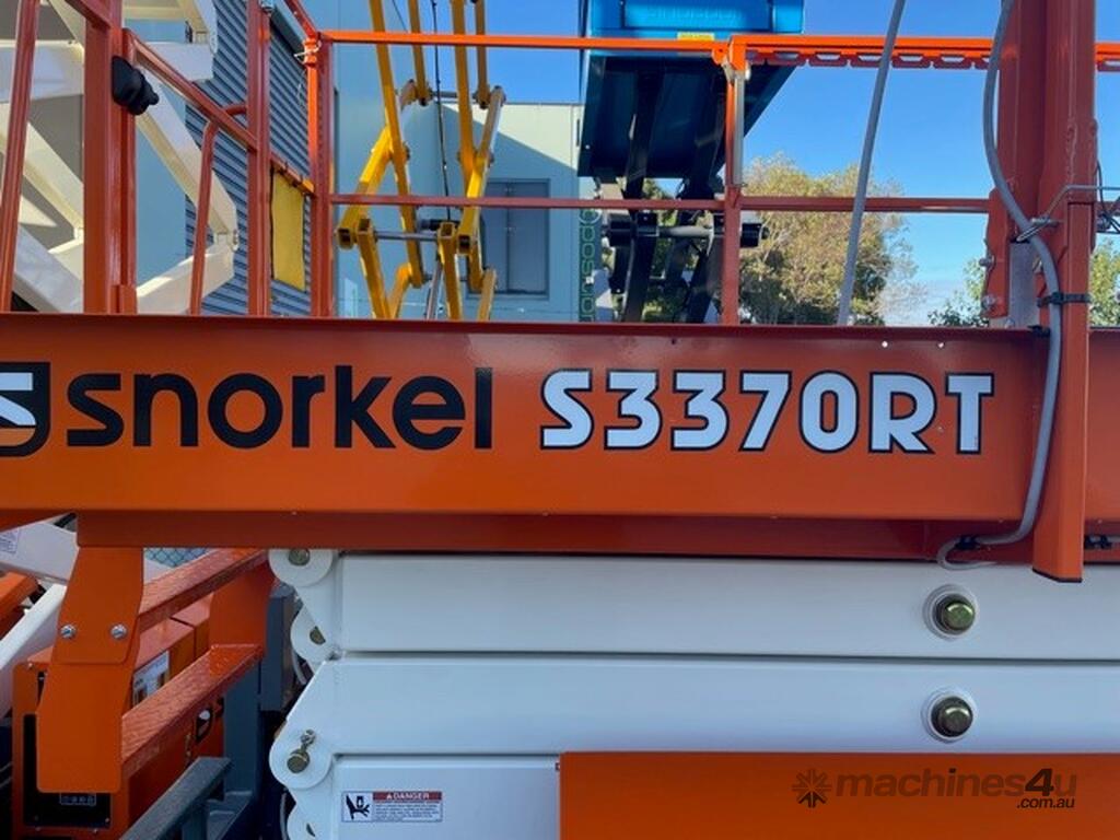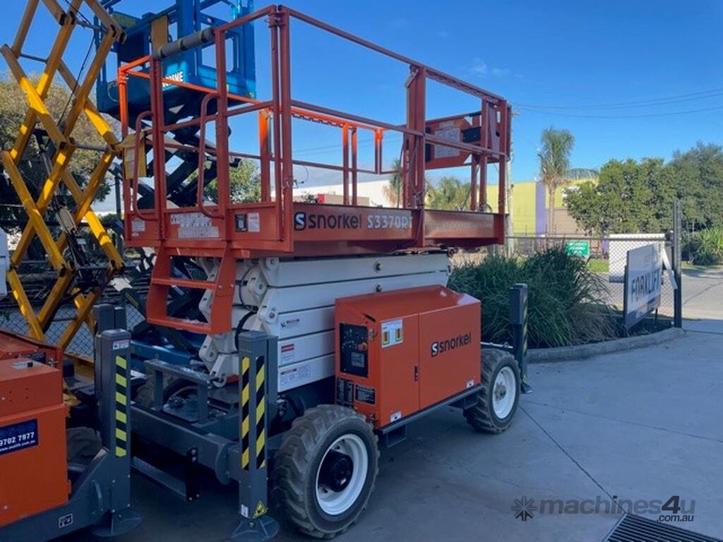 The Snorkel S3370RT compact rough terrain diesel scissor lift delivers superb rough terrain performance. Its excellent ground clearance combined with an oscillating axle tackle all terrain with ease. Standard features include auto level outriggers for stability and a roll-out deck extension for accessibility. Service and maintenance is a breeze thanks to an on-board control system with an easy-to-read diagnostic display, and all key components are easily accessible in large, twin-door side modules. A roll-out deck extension provides additional reach.