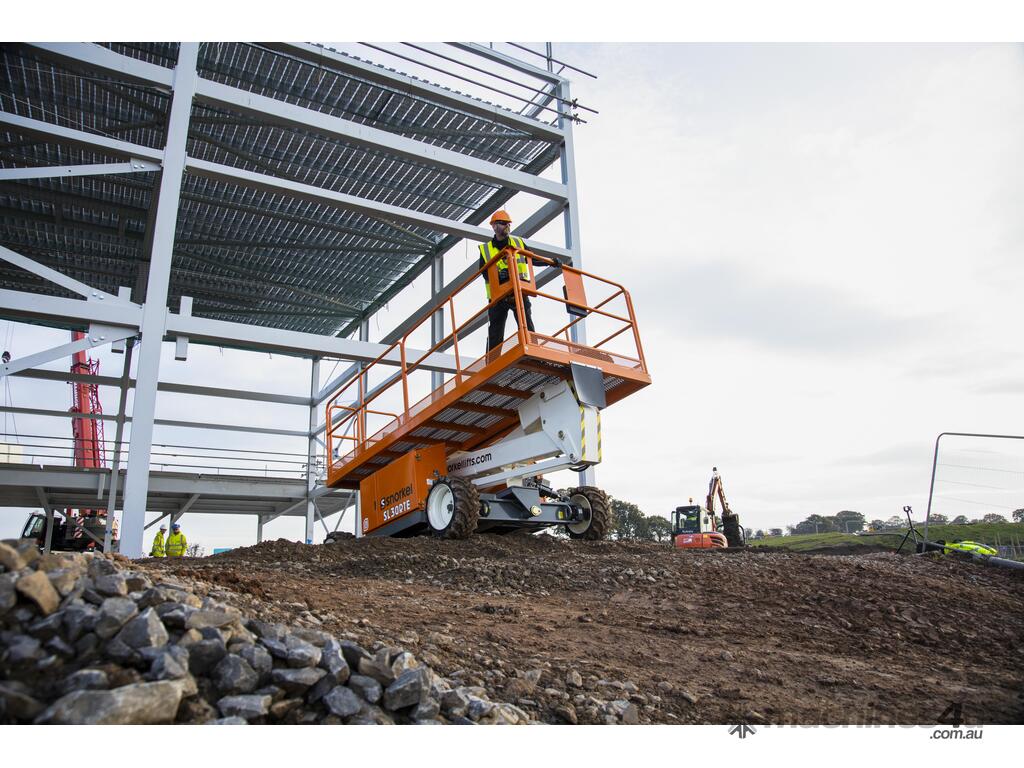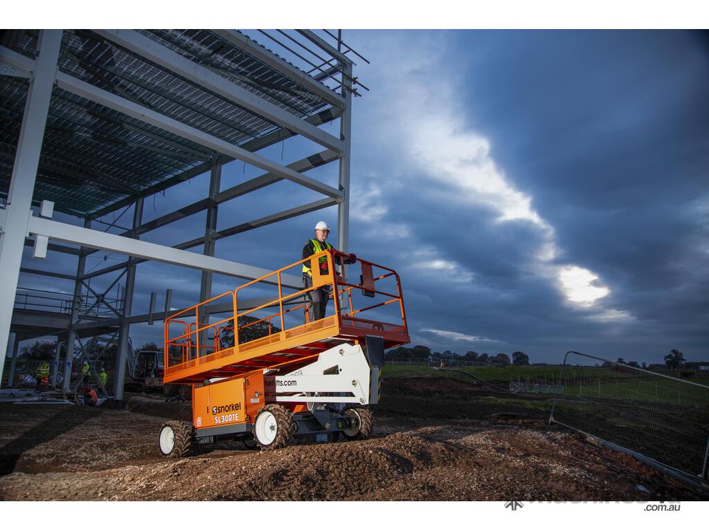 The Snorkel SL30RTE all-electric Speed Level delivers powerful endurance on all terrains. Capable of automatic self-leveling on gradients up to 50%, this lift is designed to work at height on sloped ground. Its powerful 4-wheel drive can be driven up to 0.5 mph (0.8km/h) at full height.