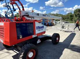 This used diesel TB42J is proven to be one of the most reliable machines in the marketplace. This machine will suit roofing, shed building, workshop maintenance, or rigging applications, or any situation where you need extended reach. With a platform height of 12.6m and a horizontal reach of 10.6m, and a Deutz diesel engine this machine has old school reliability.