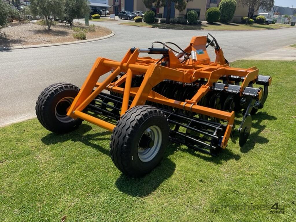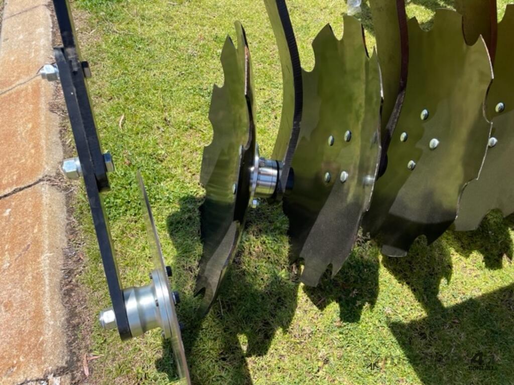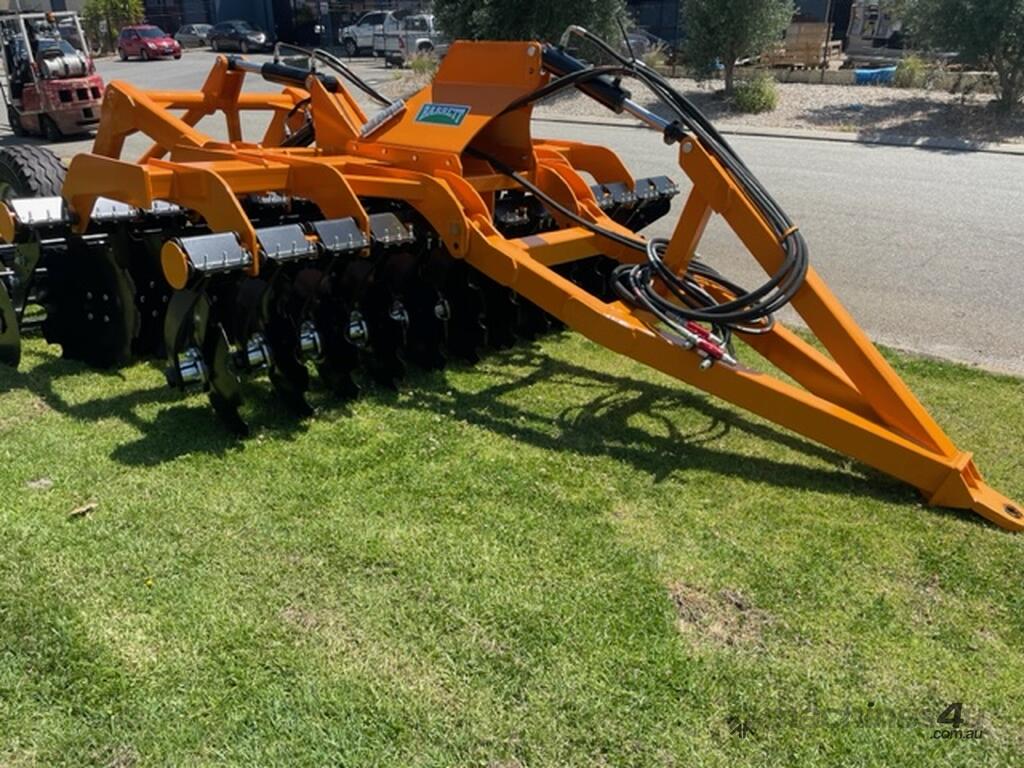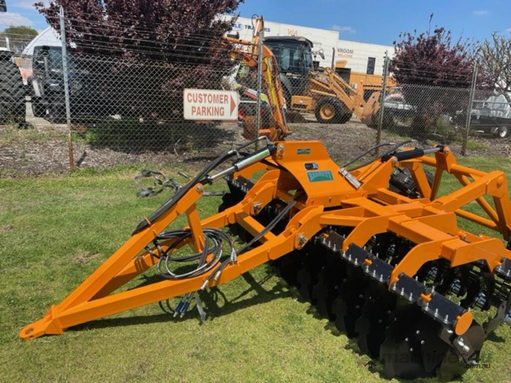 Speedtill Barrett Trailing 24 disc 3 metre with crumbler. 3 metre cut. 600mm scollop disc. Sealed bearing. Heat treated frame. Suits tractors. 120HP+. Comes with crumbler.
