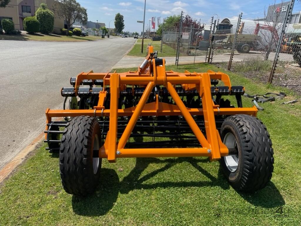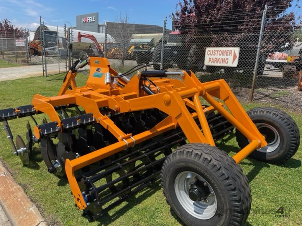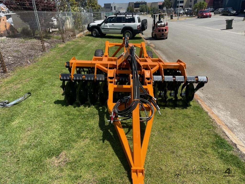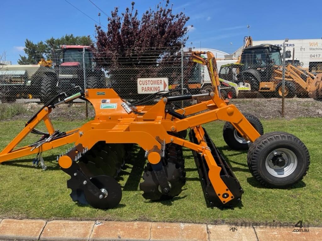 Speedtill Barrett Trailing 24 disc 3 metre with crumbler. 3 metre cut. 600mm scollop disc. Sealed bearing. Heat treated frame. Suits tractors. 120HP+. Comes with crumbler.