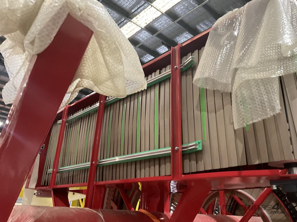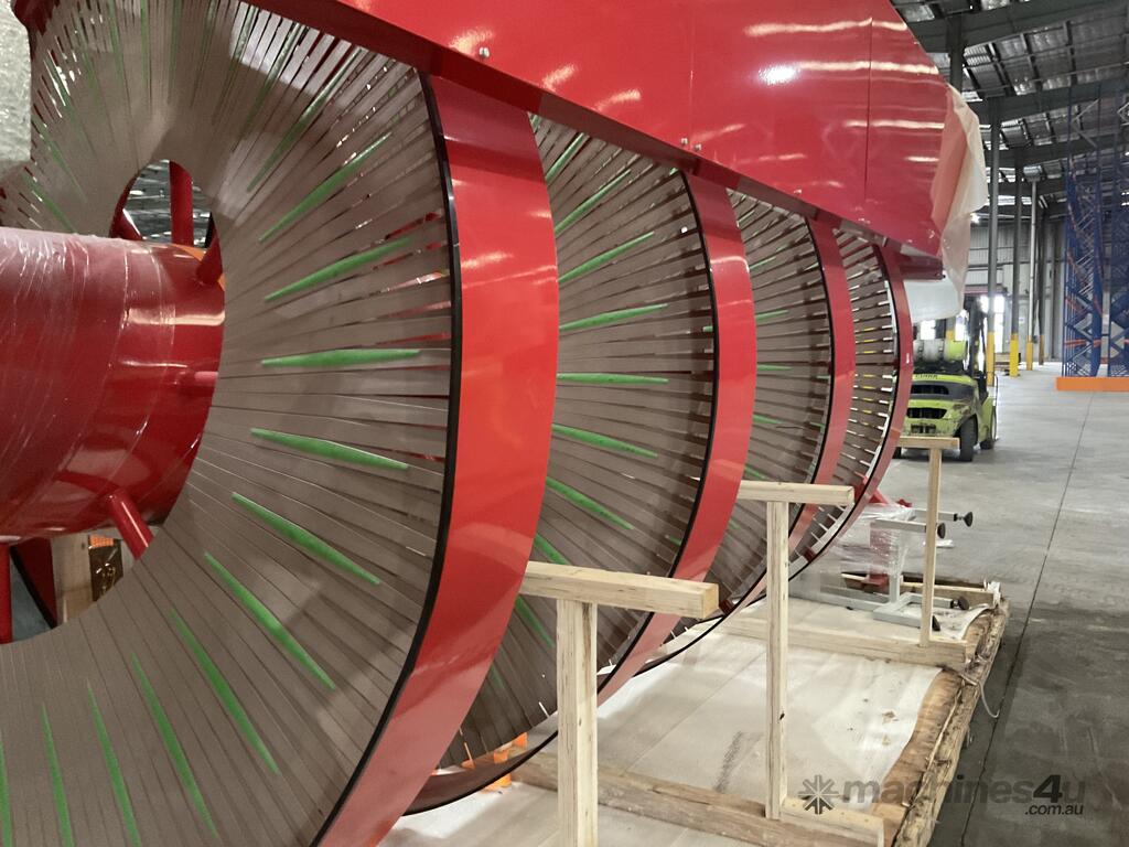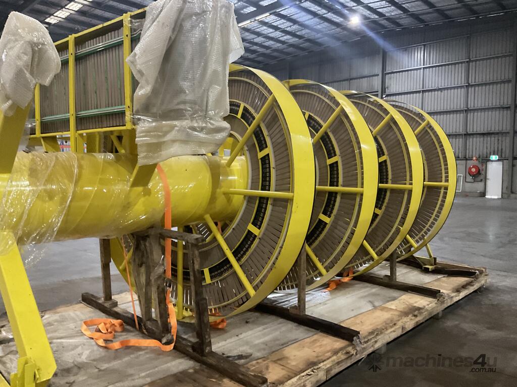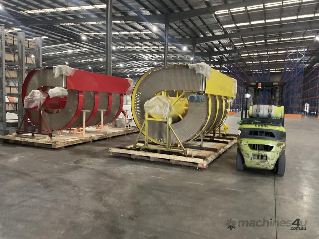 These units have a belt width of 610mm and are purpose made for taking products up to a mezzanine level for storage of the packaged product and returning to ground level when orders are being picked and packed. The drives are SEW Eurodrive which is world renowned and has service agents in every state of Australia. Painted finish with some blemishes due to shipping but these units are new and never used as the project intended to be used on changed it’s parameters.