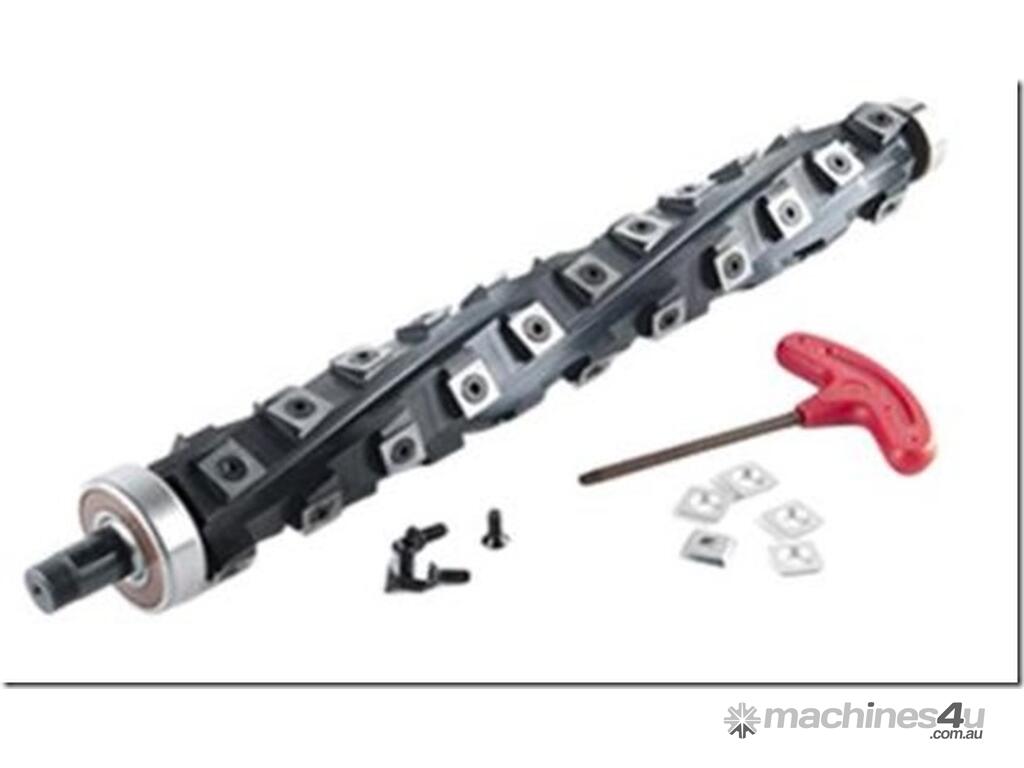 This is the OEM-size cutterhead.  The carbide knives are removed after the dynamic balance is completed and boxed separately. After the cutter block is placed into the planer, install the 40 carbide knives to the cutter block. The picture is how the whole assembly looks like, not the status that it's to be delivered to you.