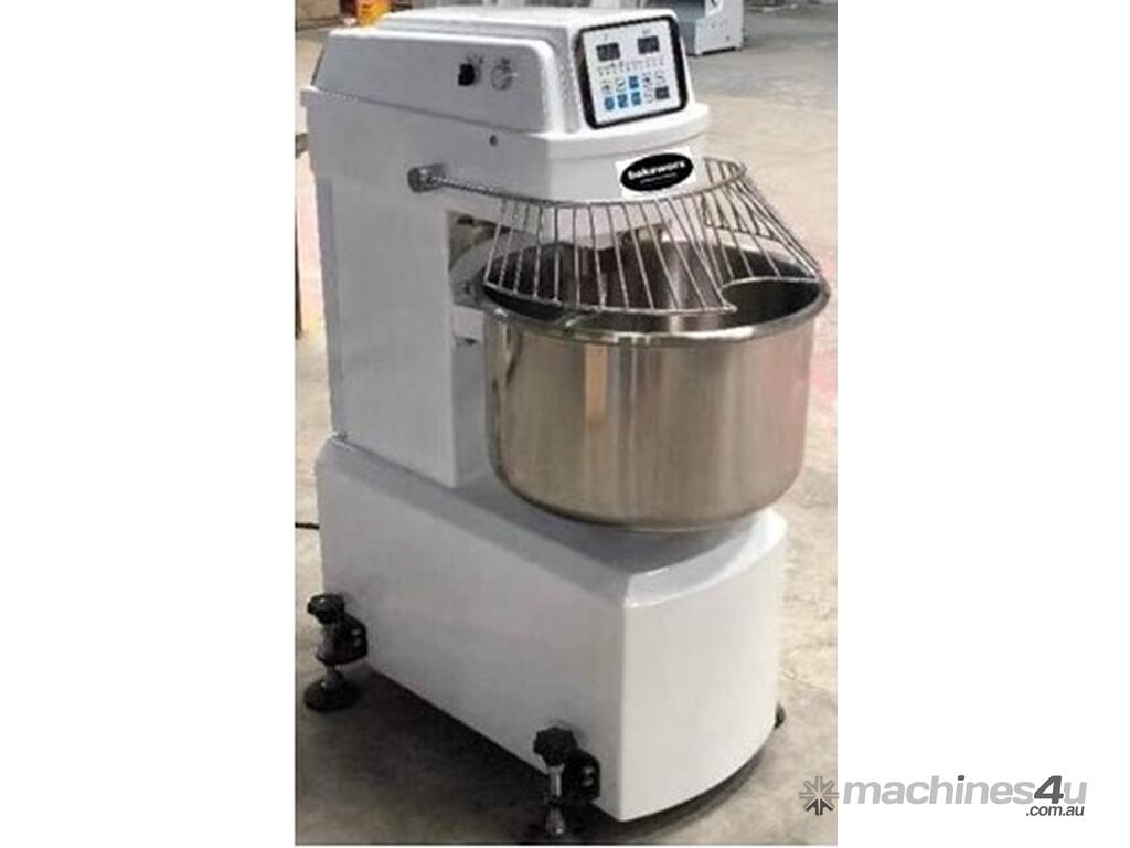 Bakeworx spiral mixers meet every baker's challenge: high capacity, high efficiency machines at an affordable price. Their exceptional reliability makes it ideal for busy bakeries and pizza shops by decreasing mixing times and minimizing maintenance. The gentle coordinated movement of bowl and agitator imitate hand kneading and rolling motions, which keeps dough cool while mixing for consistent texture. 1- Year warranty.
