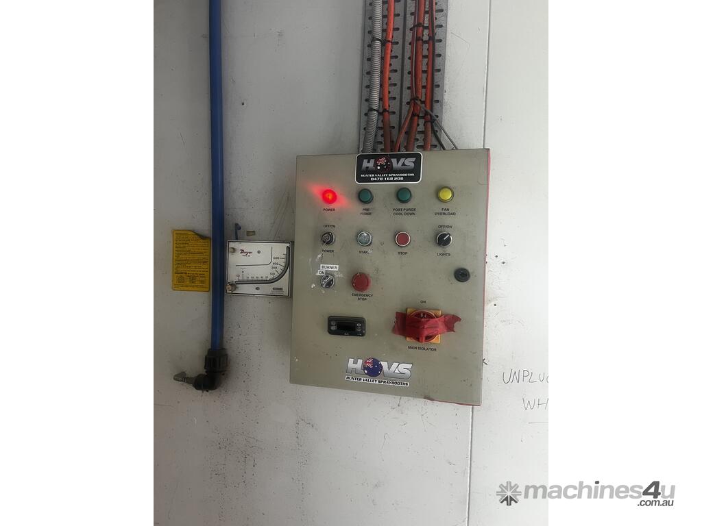 This offering is for a used BTM Spray Booth complex, presenting a comprehensive setup for professional automotive or industrial finishing. The main spray booth is substantial, featuring internal dimensions of 6.3m in length by 4.0m in width, providing ample space for spraying large vehicles or components. It operates using a Semi Down Draft ventilation system, which effectively draws overspray down and away from the working area, ensuring a cleaner environment and a high-quality finish.