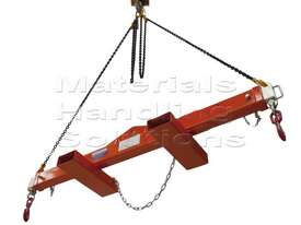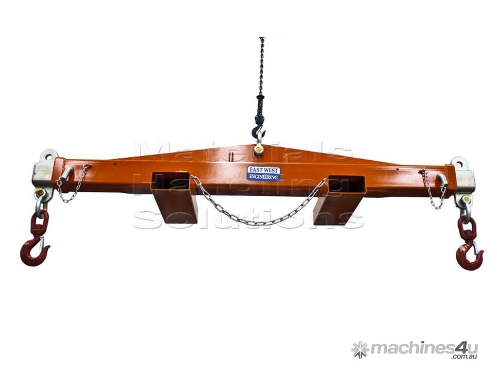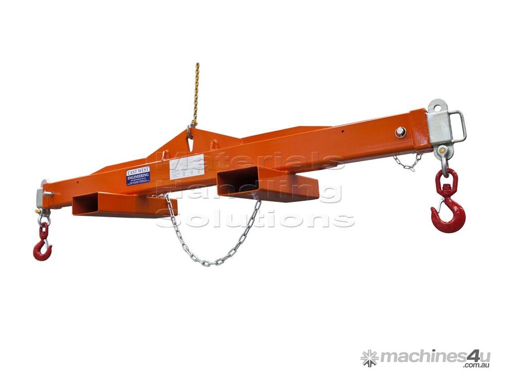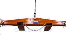 This spreader beam is designed for use with cranes and forklifts to safely lift and transport heavy loads.
