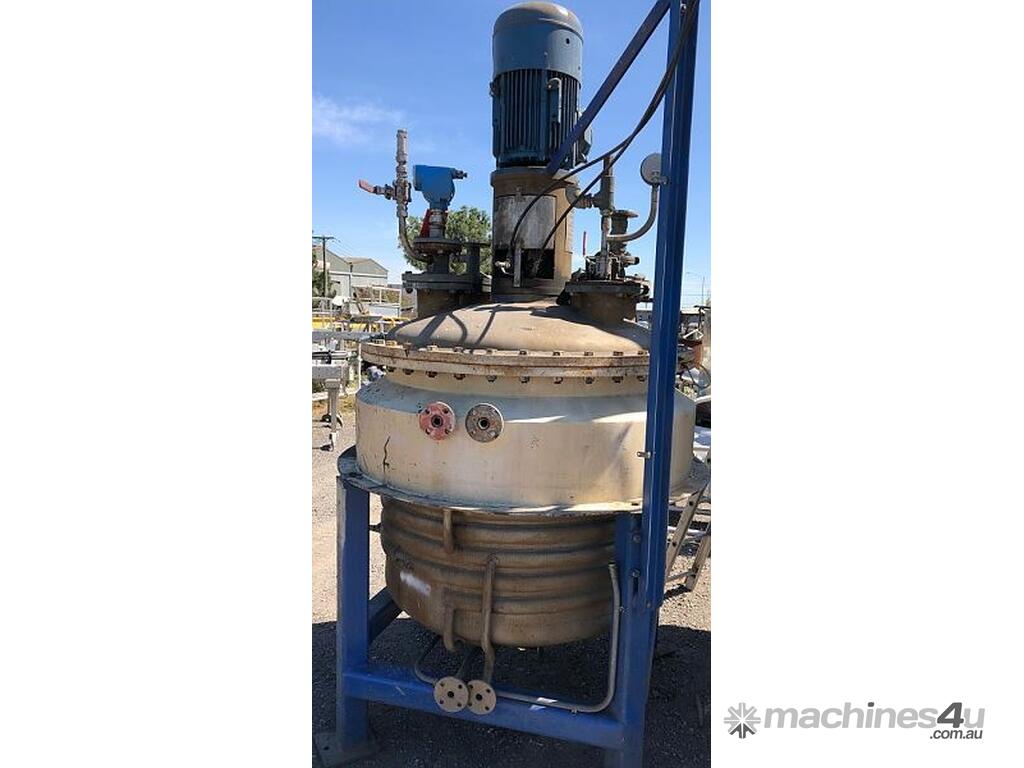 1000L Reactor Stainless steel, 316SS, free standing with legs.Shell stamped TP 60psi WP 30psi. Coil TP160psi WP 80psi1/2pipe external jacketed coil.22kw Exd Toshiba 4 pole motor with dispersion blade.Infeed Endress Hauser flow meter.Pressure Relief valve.Outlet 65mm.AES Pressure seal.Overall height 2.8mOverall diam 1.5.