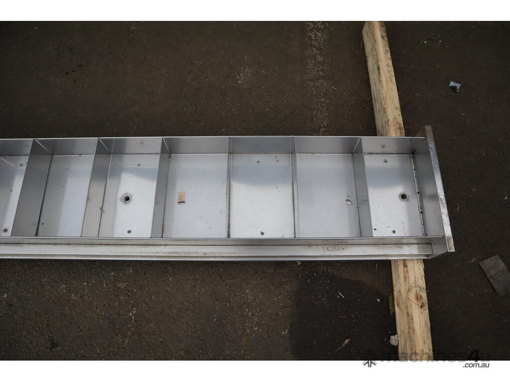 It has evenly sized compartments made from stainless steel to put products into. The base is made out of thick chipboard for strength and sturdiness.