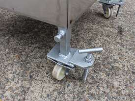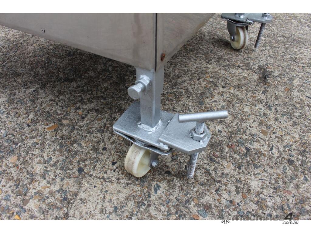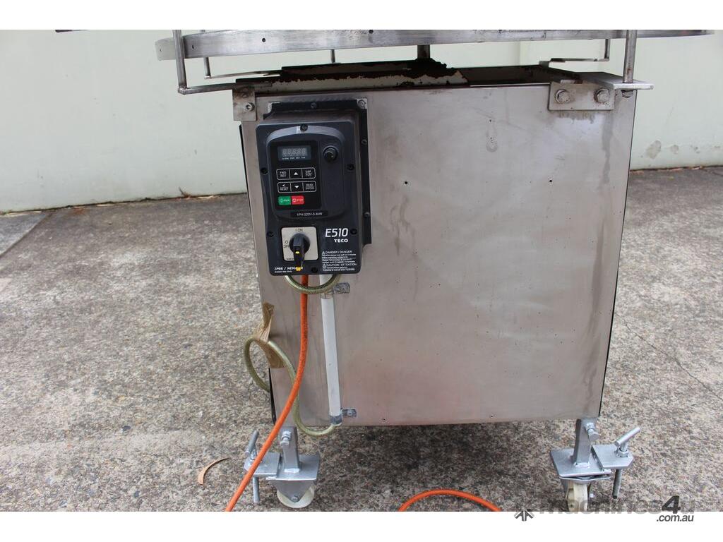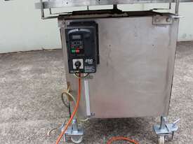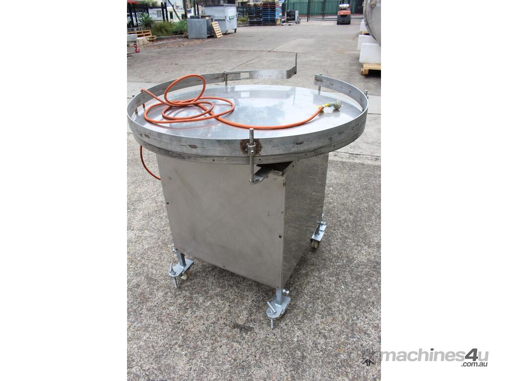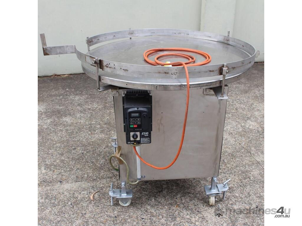 Turntable, dimensions 1000mm dia x 920mm high, completely stainless steel with side rails, variable speed controller, 240V single phase, mobile