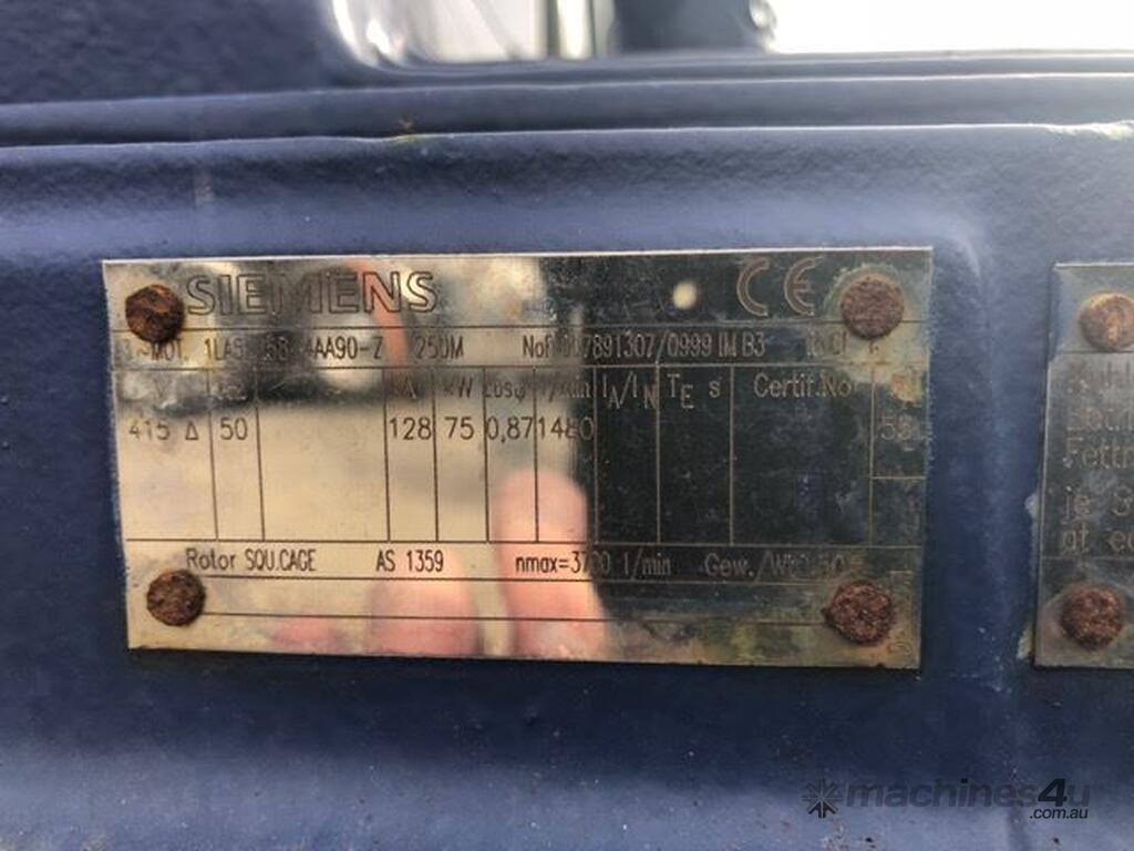 Stainless steel fully open impeller pump(approx 320mm dia), 316SS, with 75kw Siemens 4pole electric motor.