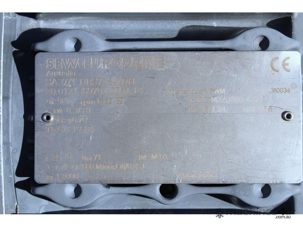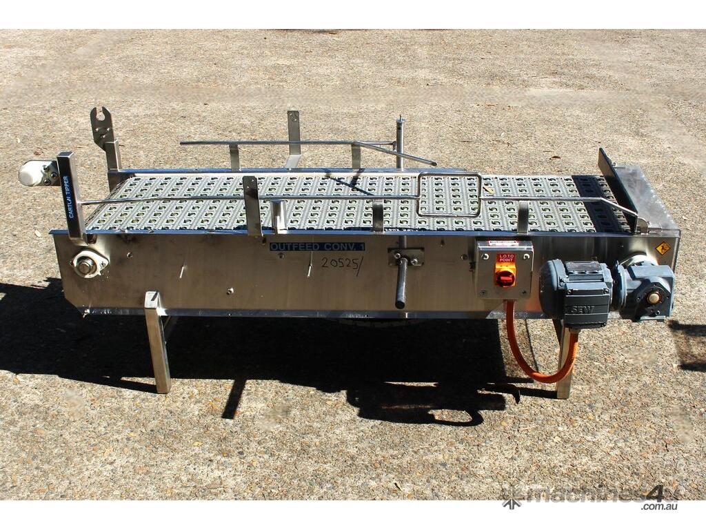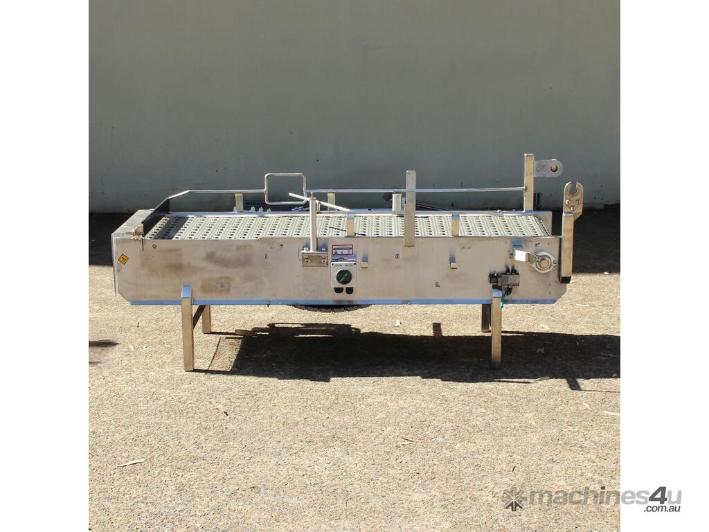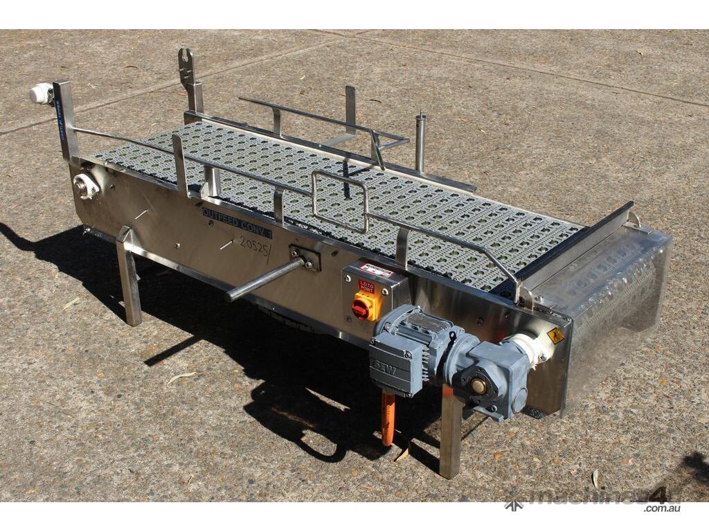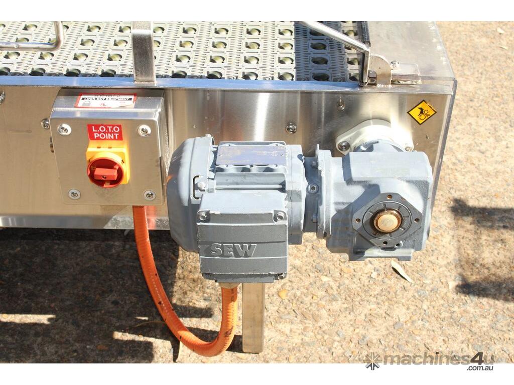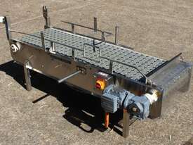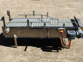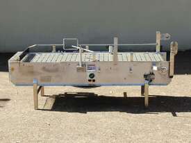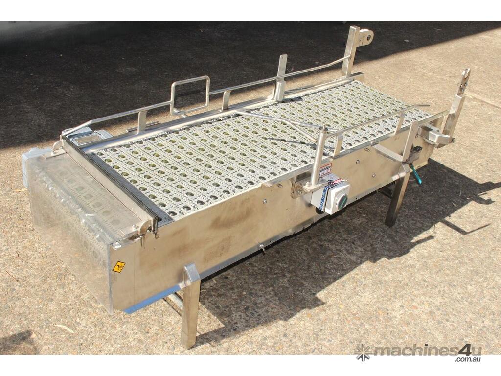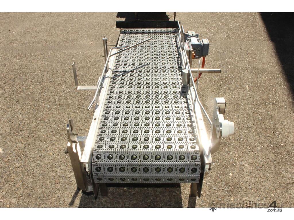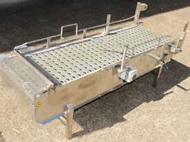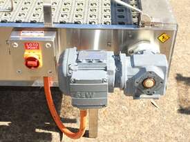 Stainless Steel Conveyor, activated roller belt, 450mm wide x 1700mm long x 540mm high, driven by 3 phase 0.37kw geared motor