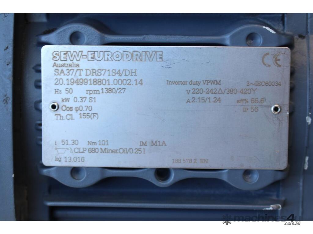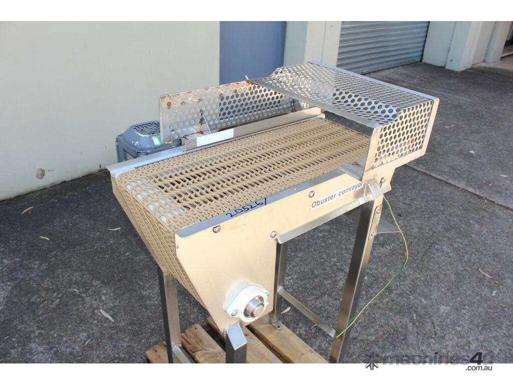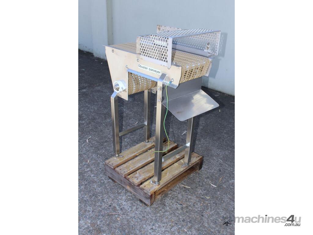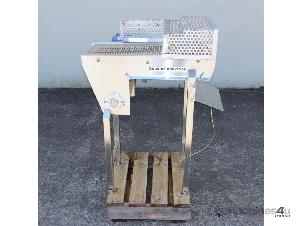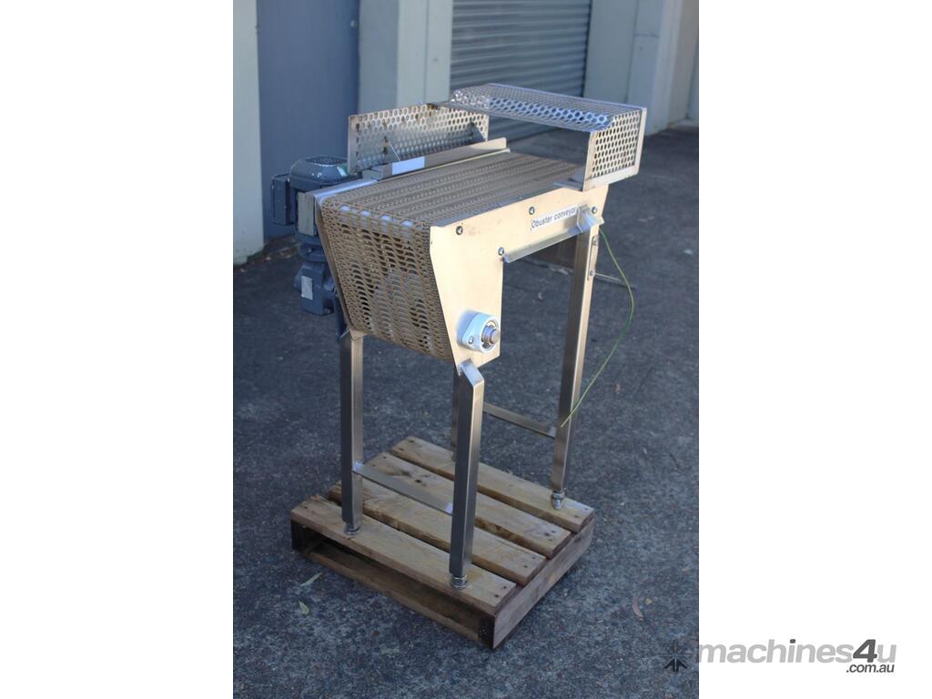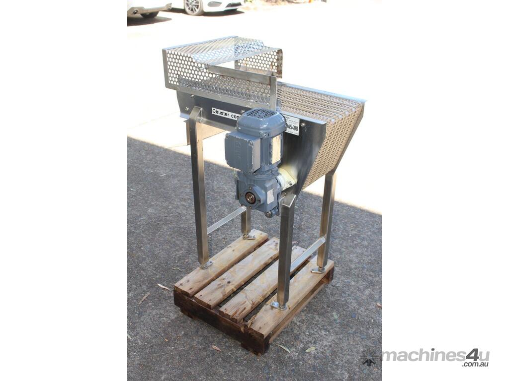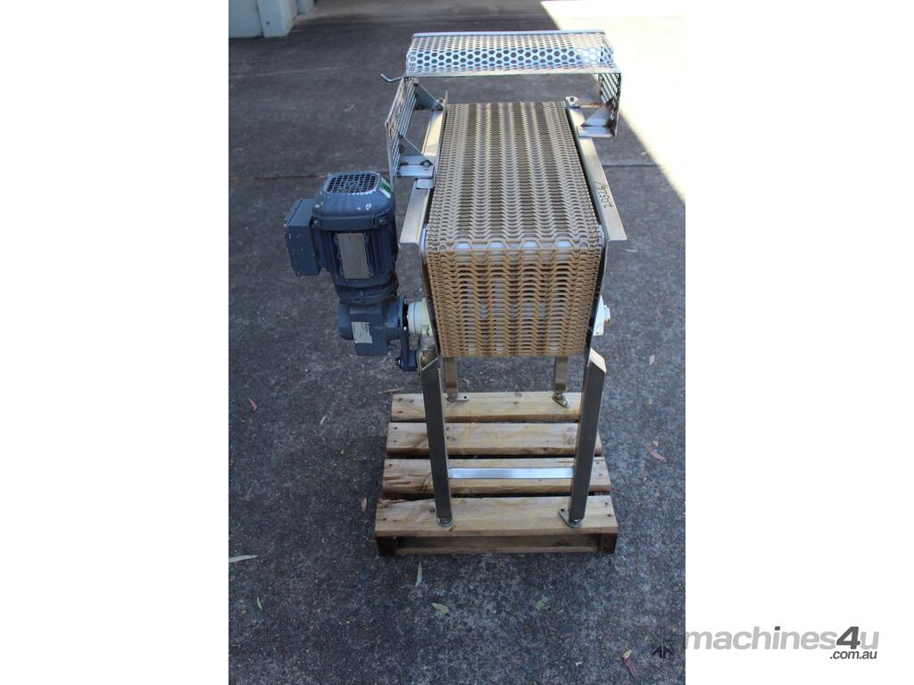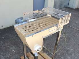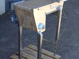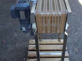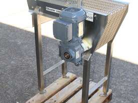 Stainless Steel Conveyor, 700mm long x 260mm wide x 850mm high, driven by 3 phase 0.37kw geared motor,