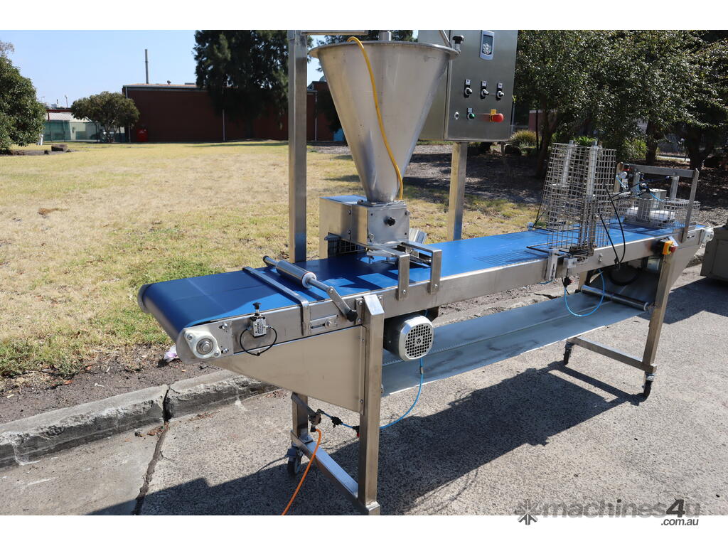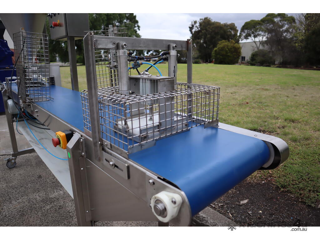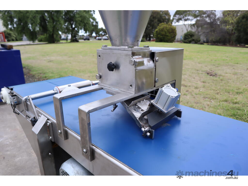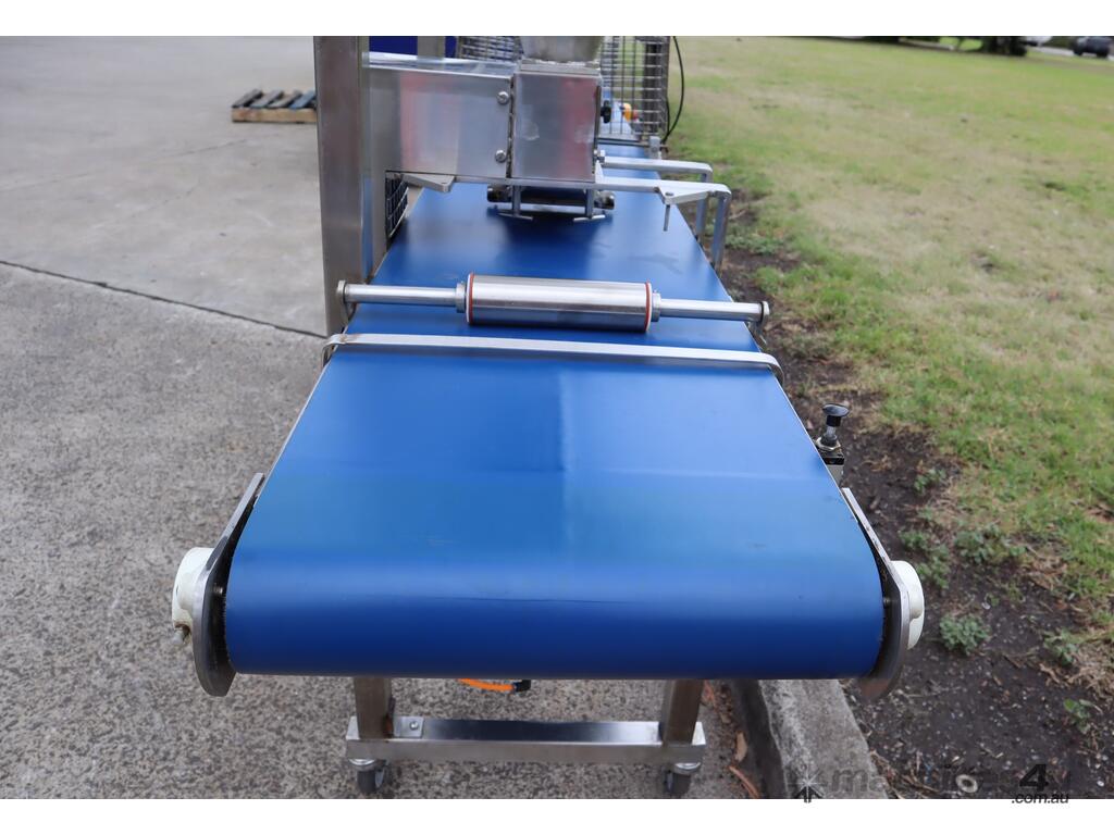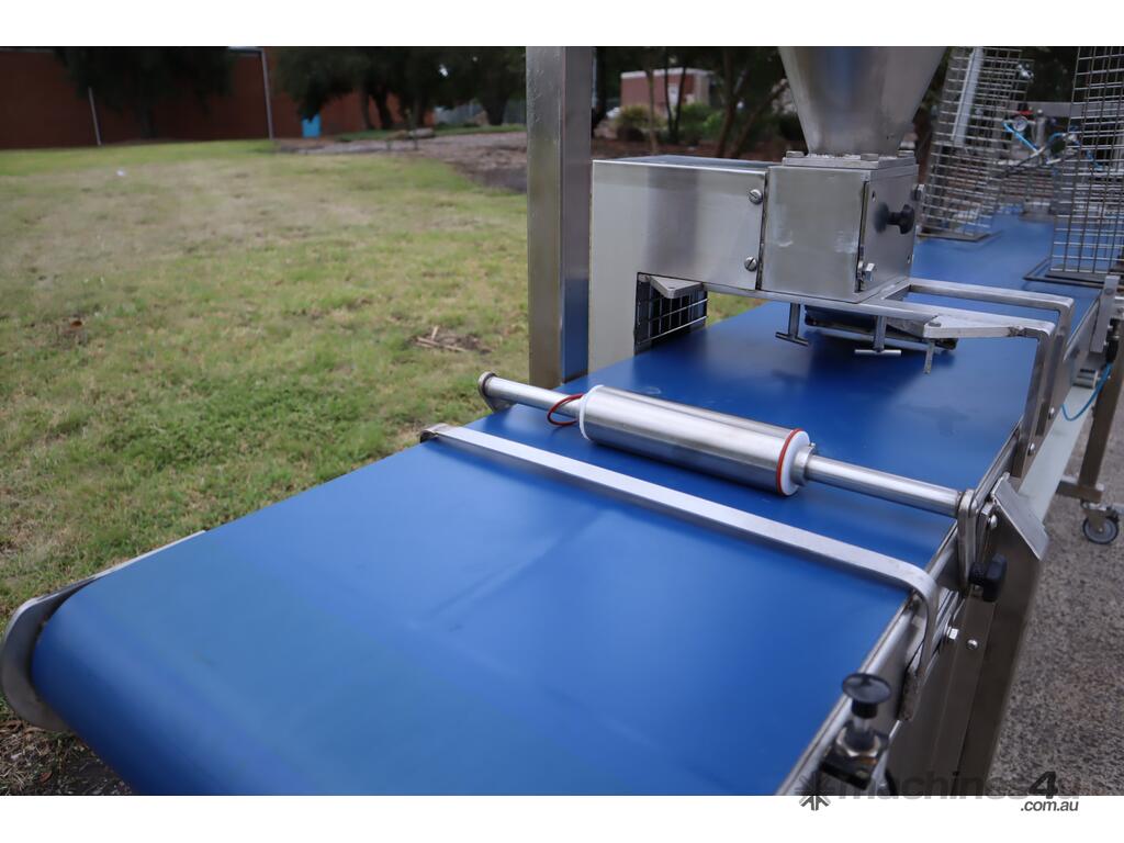 "This Stainless Steel Depositor Conveyor System is designed for use in food production environments where precision and hygiene are paramount. Ideal for businesses involved in bakery, confectionery, or similar industries, this machine facilitates efficient, automated product deposition and transport along a flat, food-grade conveyor belt. The system is powered by two Bonfiglioli motors, ensuring reliable operation. It is suitable for small to medium-sized enterprises looking to enhance their production capabilities with a versatile and durable conveyor solution."