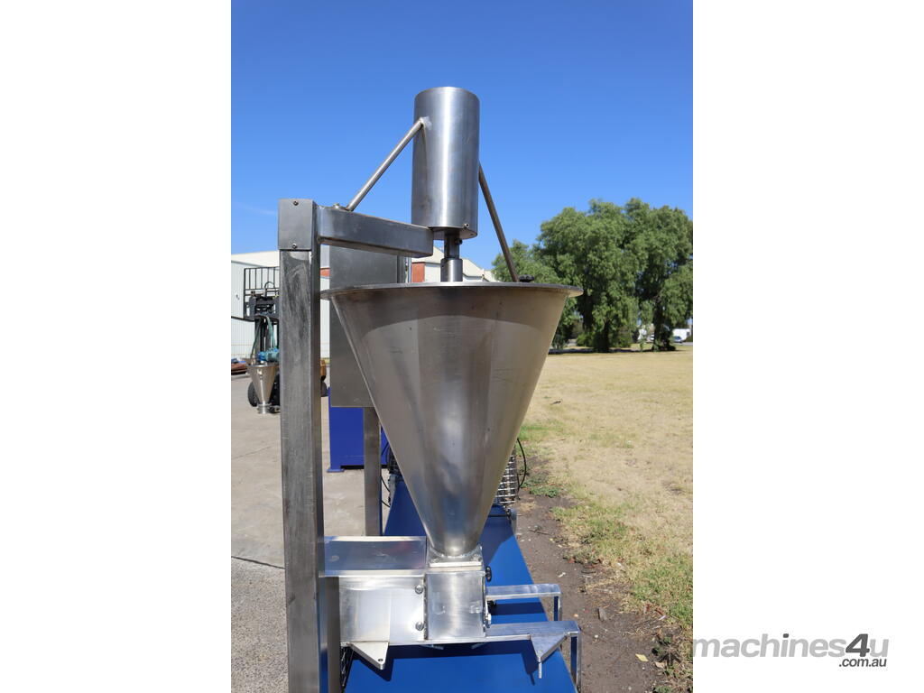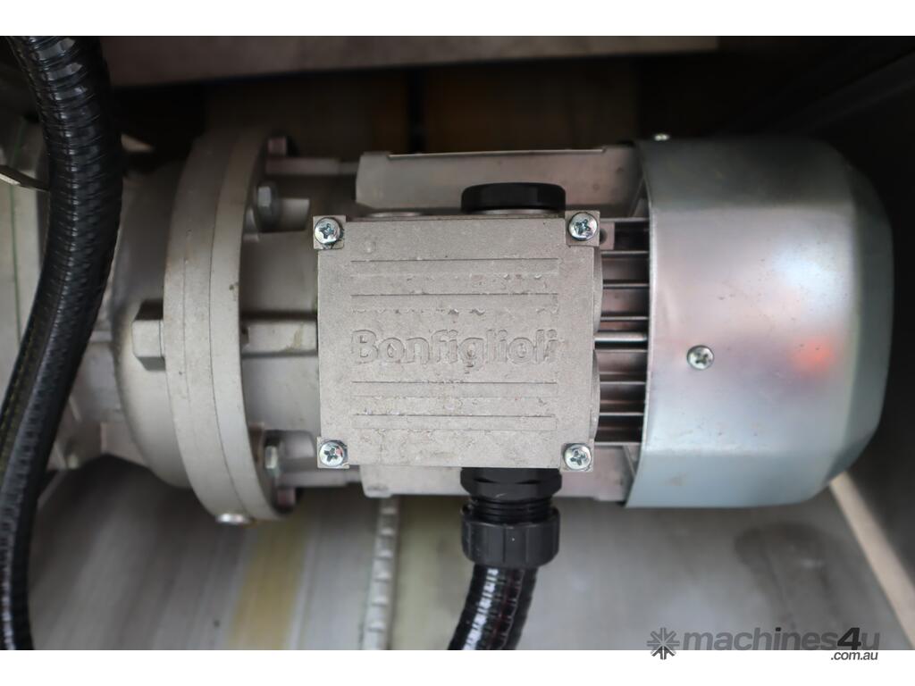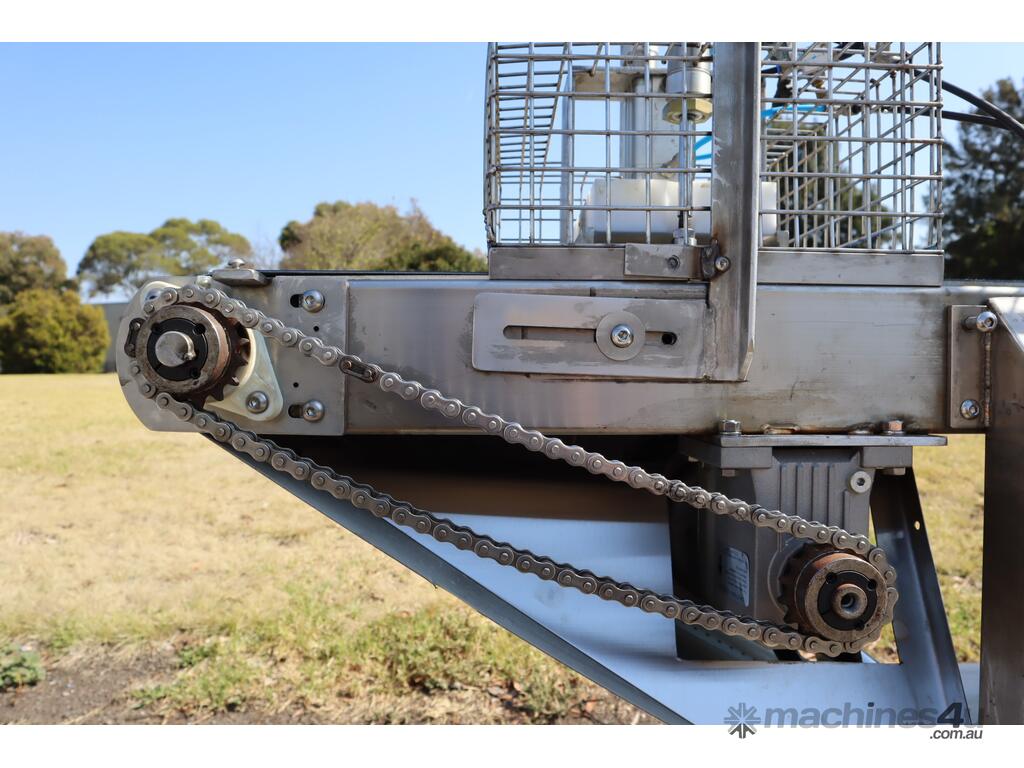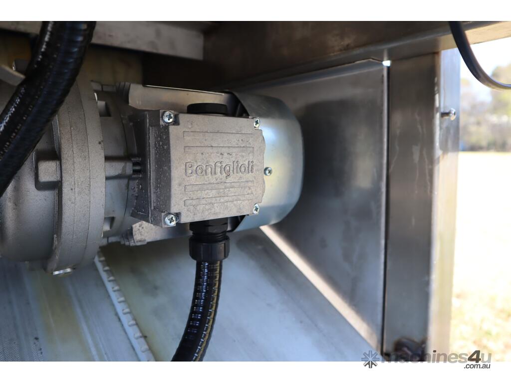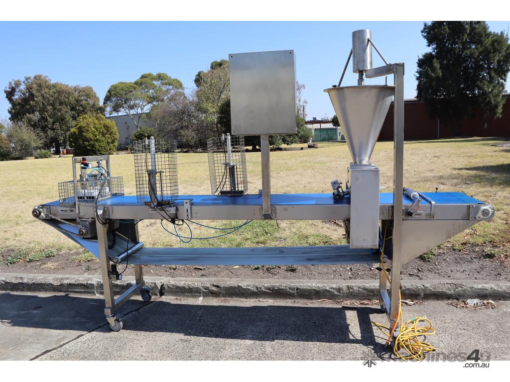 "This Stainless Steel Depositor Conveyor System is designed for use in food production environments where precision and hygiene are paramount. Ideal for businesses involved in bakery, confectionery, or similar industries, this machine facilitates efficient, automated product deposition and transport along a flat, food-grade conveyor belt. The system is powered by two Bonfiglioli motors, ensuring reliable operation. It is suitable for small to medium-sized enterprises looking to enhance their production capabilities with a versatile and durable conveyor solution."