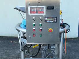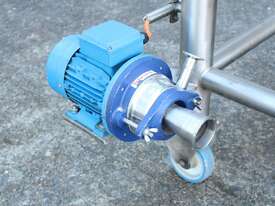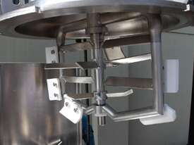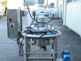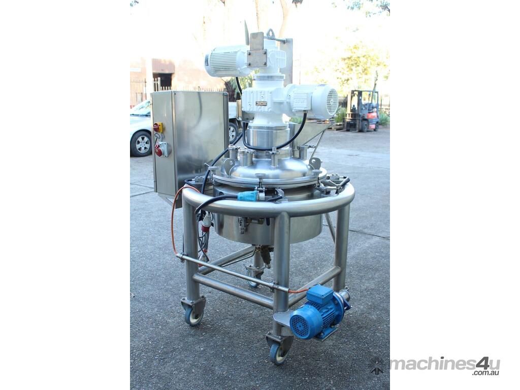 Stainless Steel Dimple Jacketed Contra Mixing Tank, "JLMD", 50 Ltr capacity, Internal Dimensions: 550mm dia x 350mm deep, grade 316SS, open top with a clamp down heavy duty lid with a top entry contra rotating scrape surface mixer, conical bottom with a centre bottom outlet, dimple jacketed sides and bottom, fully insulated and stainless steel sheathed, mounted on loadcells with a Ranger 5100 indicator, 2 x variable speed controllers, full control panel, mounted on a mobile stainless steel frame complete with circulation Pump and Some accessories