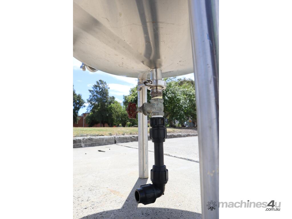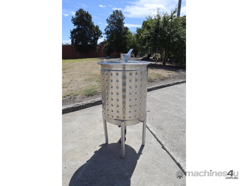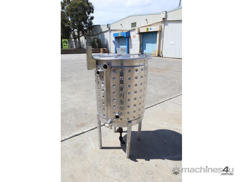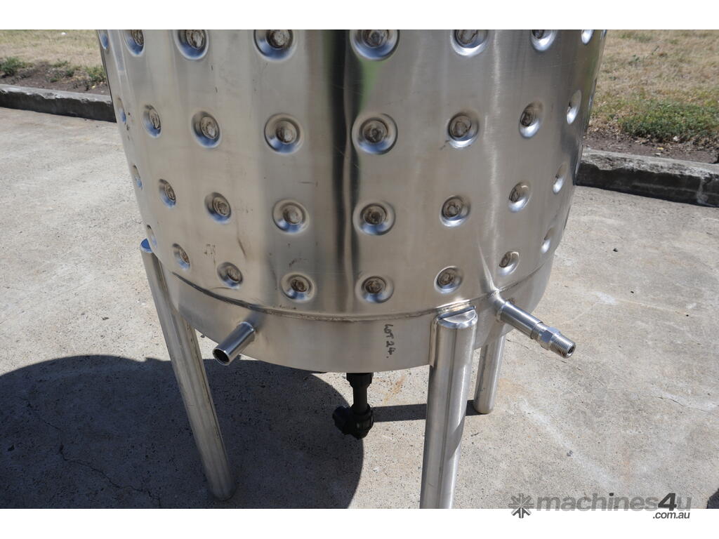 The tank has a dimple style jacket. There is also a mounting point and a cutout for a clamp-on mixer.