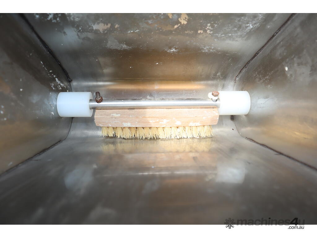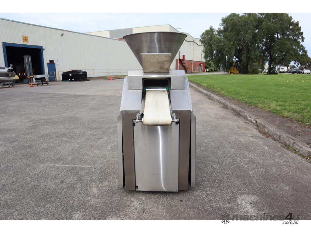 "This stainless steel dough divider may be ideal for use in commercial bakeries and other food production facilities. It may be used for dividing large batches of dough into consistent, uniform portions before baking or further processing. The machine may benefit businesses by automating the division process, thus increasing production efficiency and ensuring consistent dough portions for each batch. The machine uses a hopper to receive the dough and a conveyor belt system to transport it for further processing or packaging."