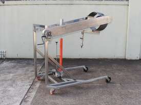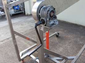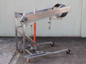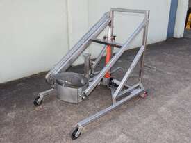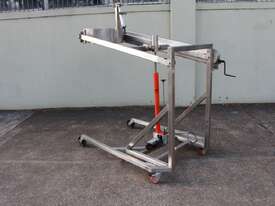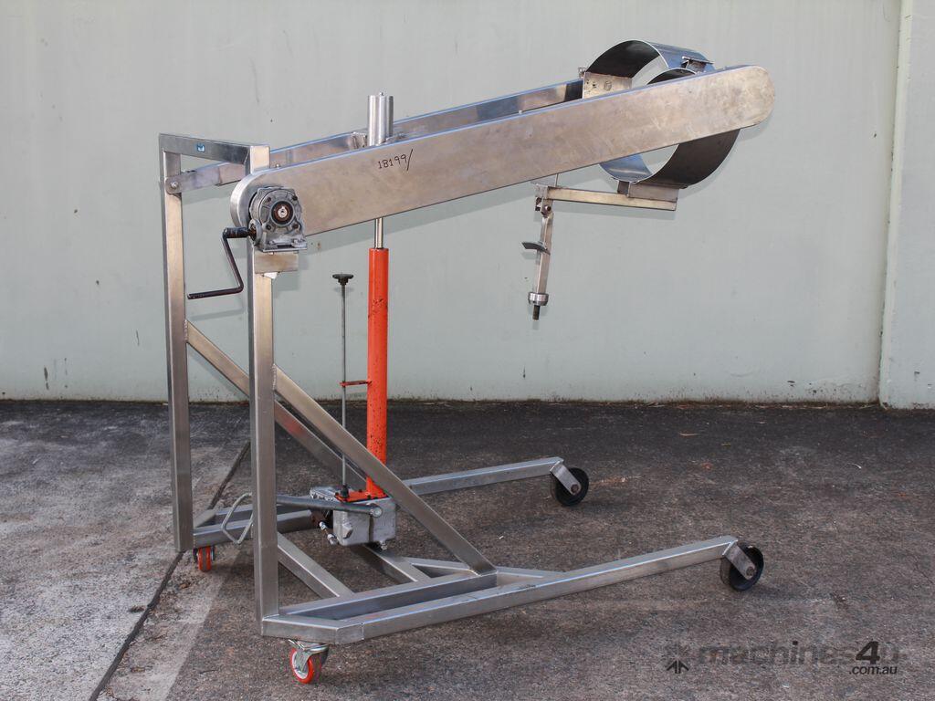 Stainless Steel Drum Lifter, maximum lift height 2500mm, 180mm floor clearance, foot pump or pneumatic operated, manual drum tilt, mobile