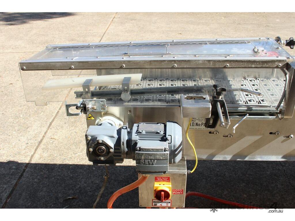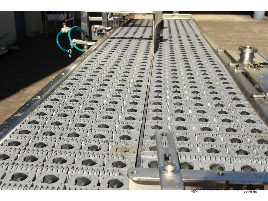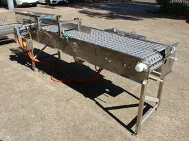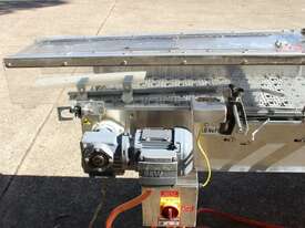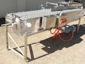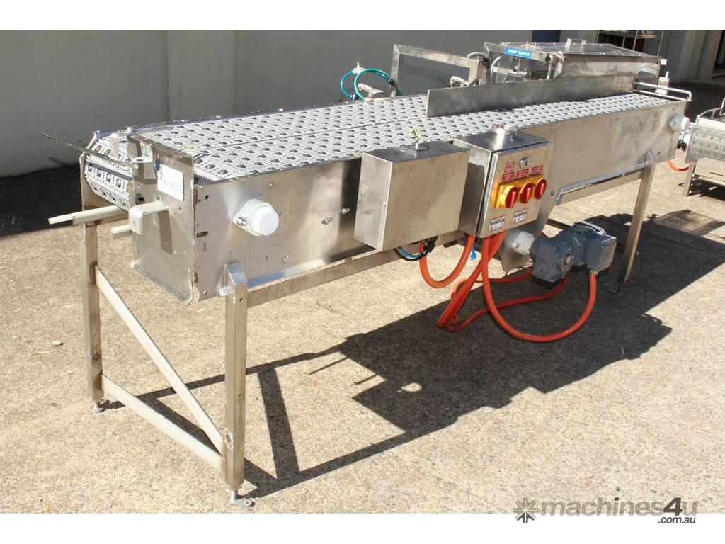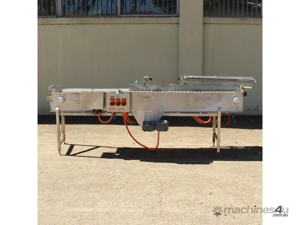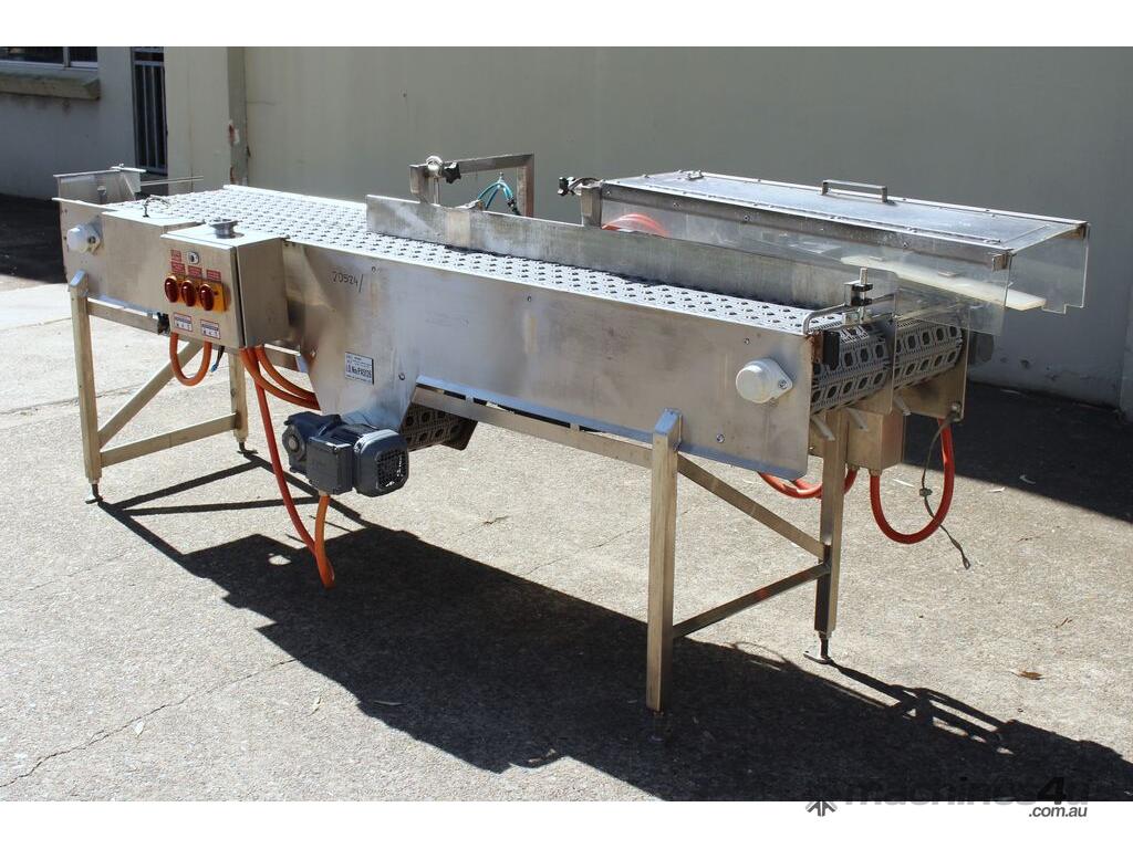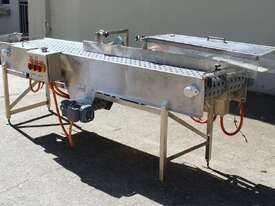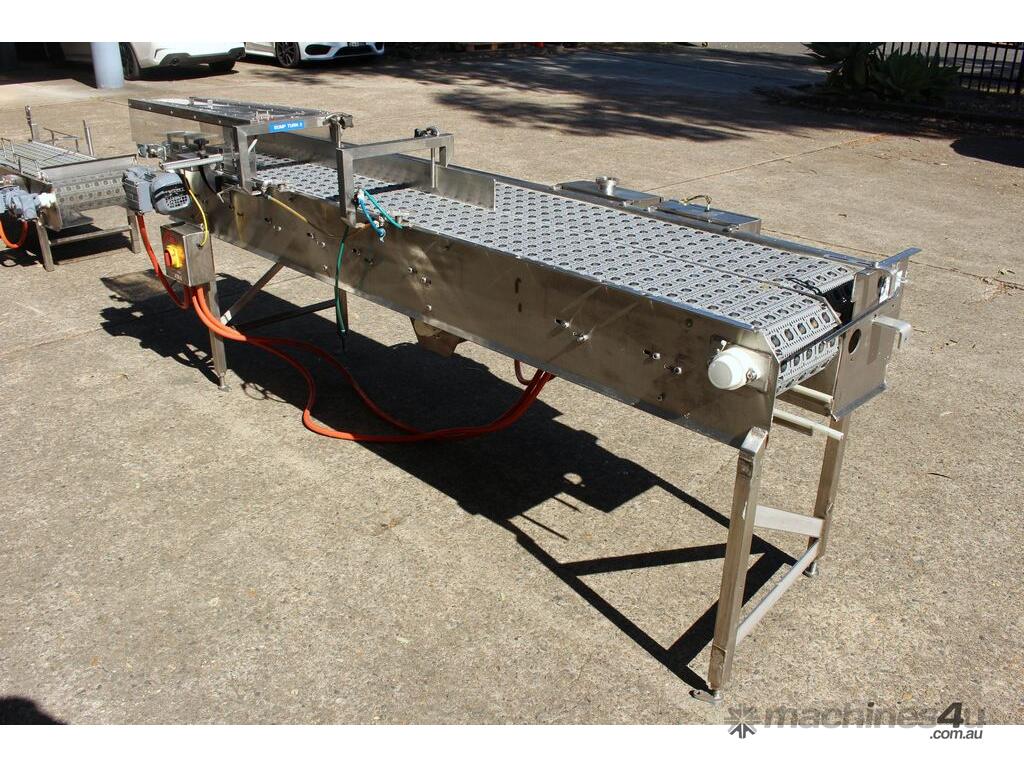 Stainless Steel Dual Conveyor, 2 x 250mm wide x 2600mm long activated roller belts, 540mm height, driven by two individual 3 phase 0.37kw geared motor