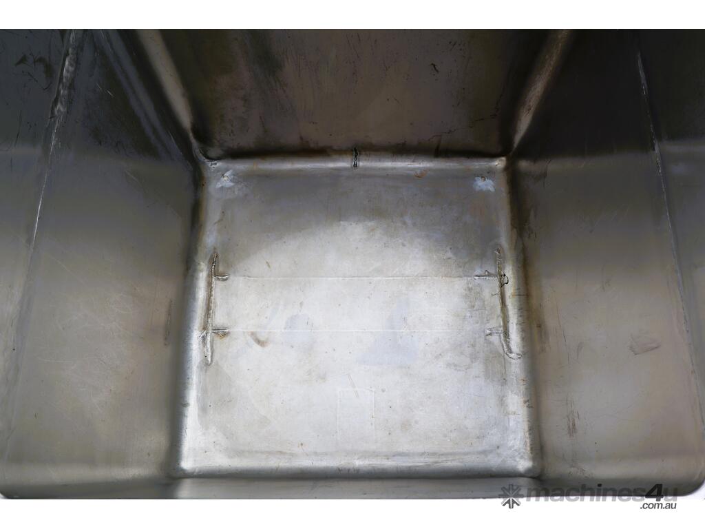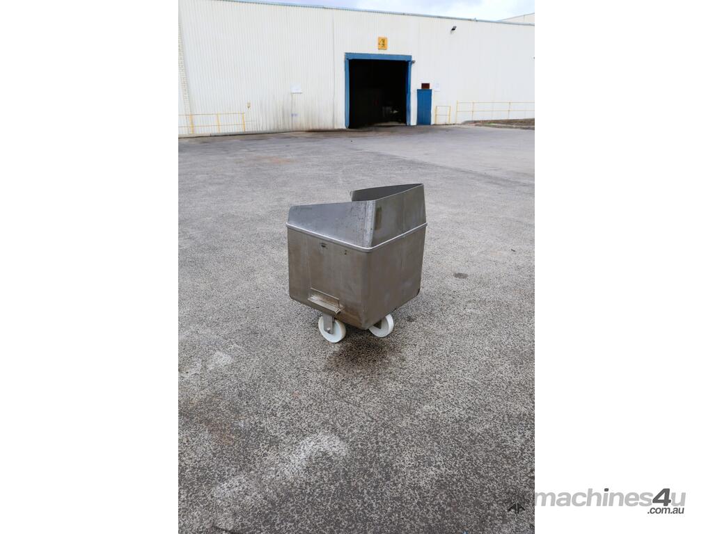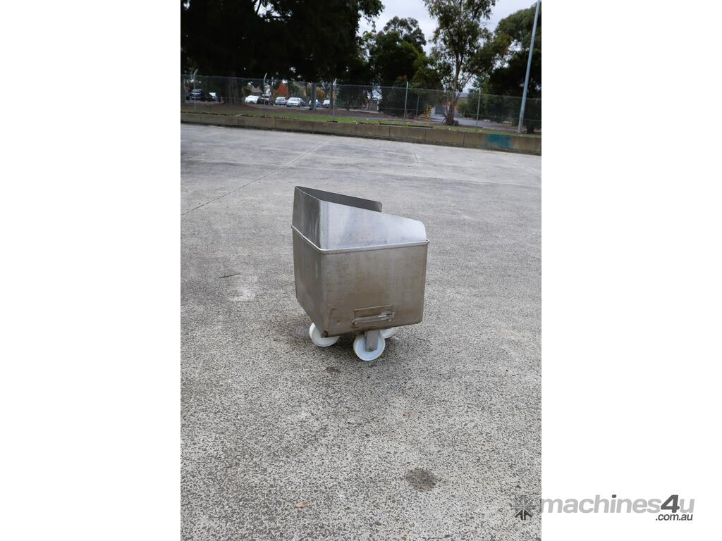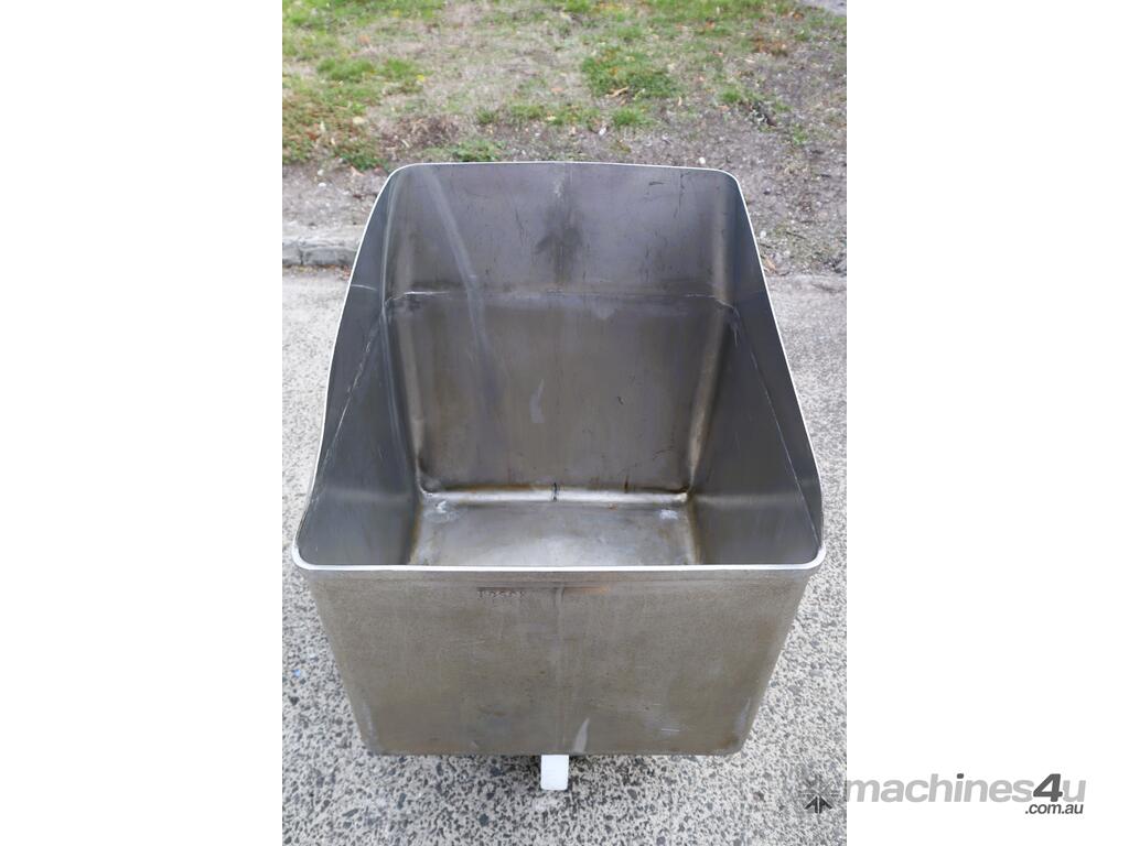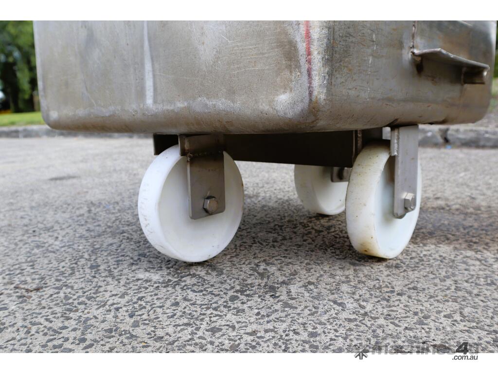 This stainless steel bin tub trolley is in good condition. It's equipped with side tracks for bin lifters to easily handle and castors for mobility. It's compact form and small footprint makes it versatile for a range of usage applications.