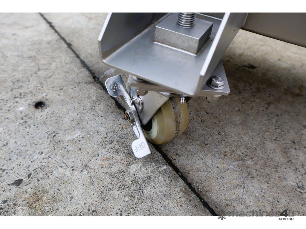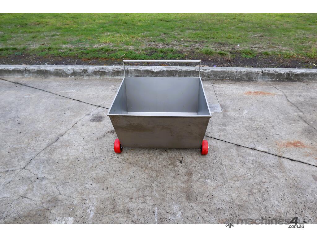 This stainless steel bin tub trolley is in good condition. It's equipped with castors for mobility that includes castor brakes so that the trolley stays in place if required. It's compact form and small footprint makes it versatile for a range of usage applications.
