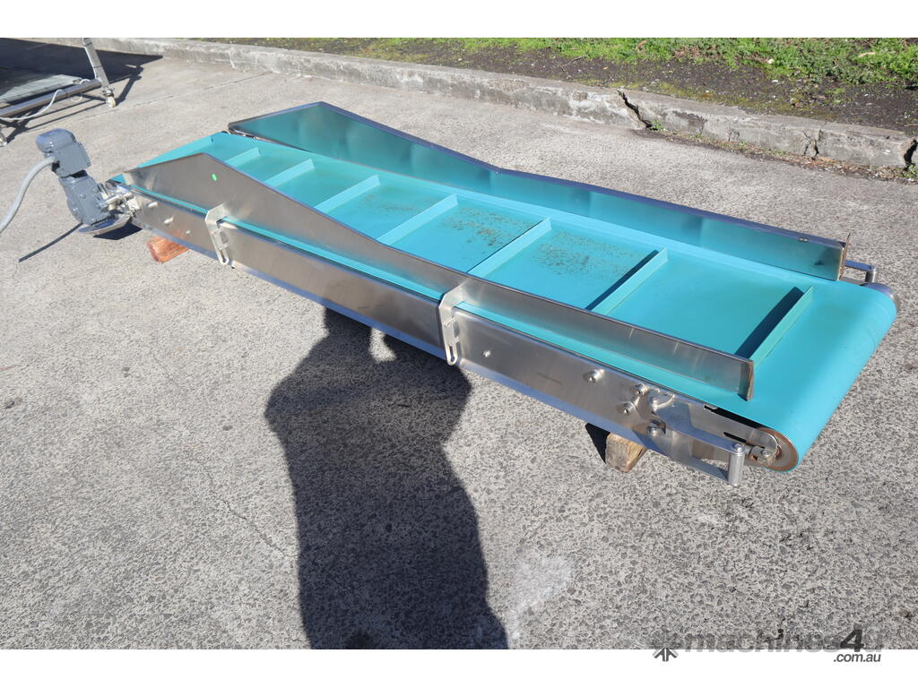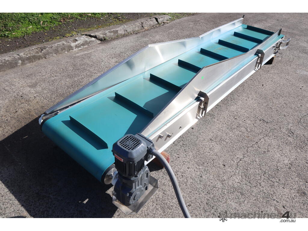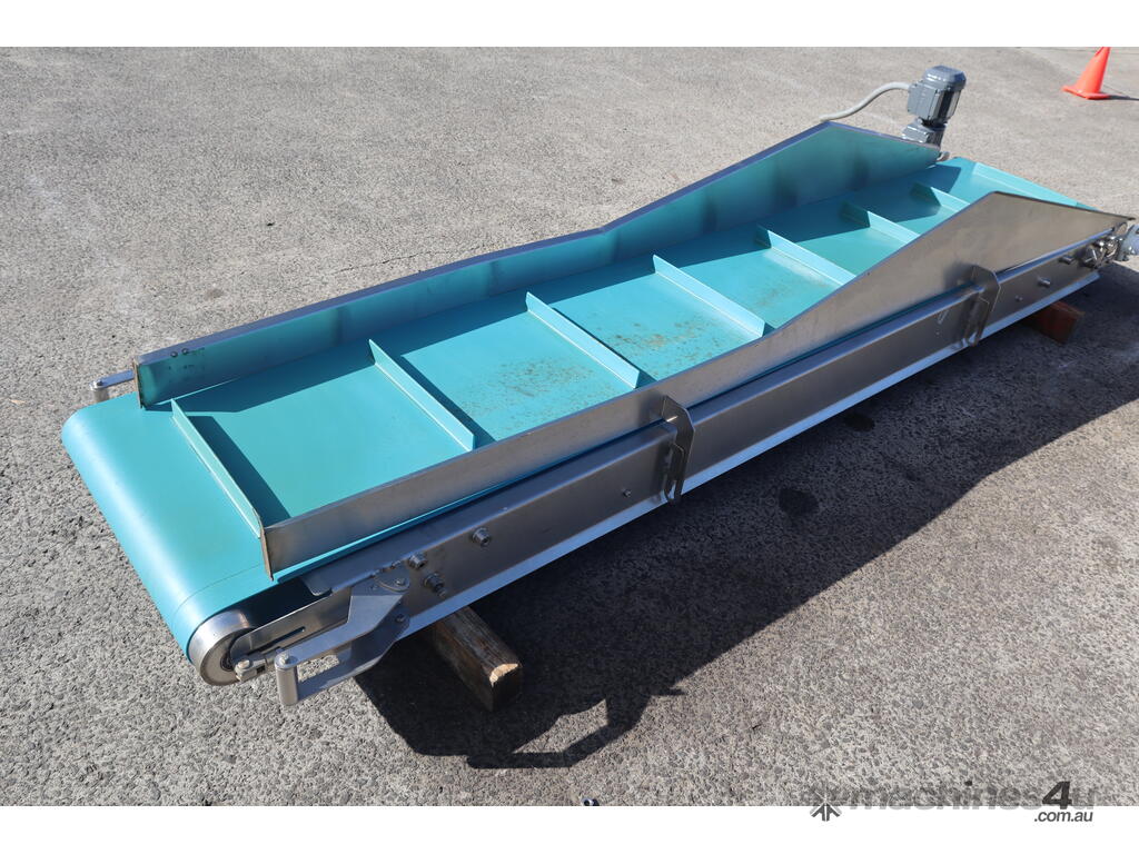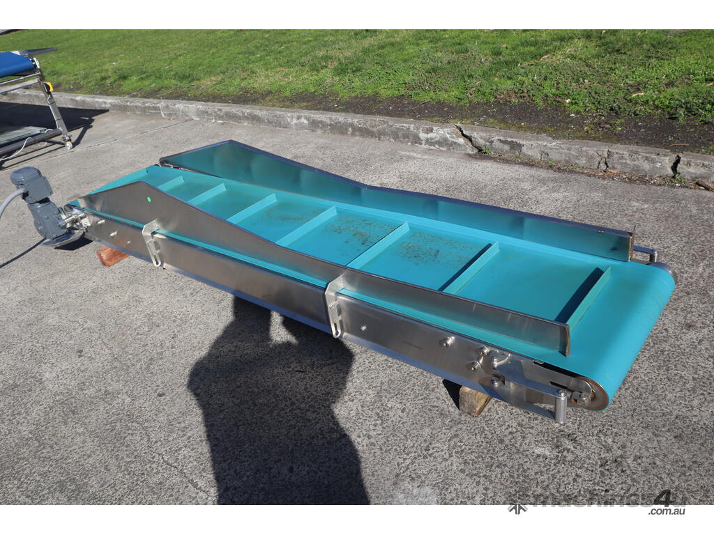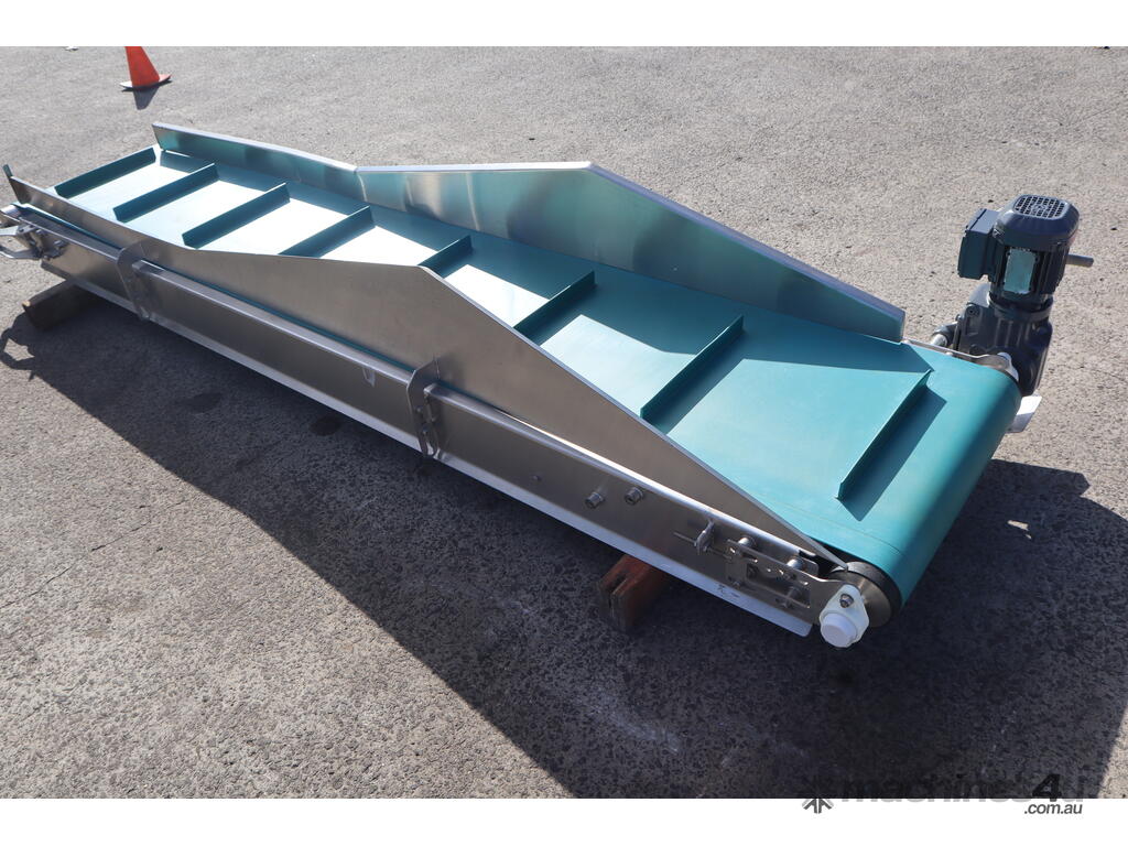 This conveyor is in great condition. Designed to move materials or products at an upward angle, bridging differences in elevation. Commonly used in various industries.