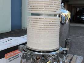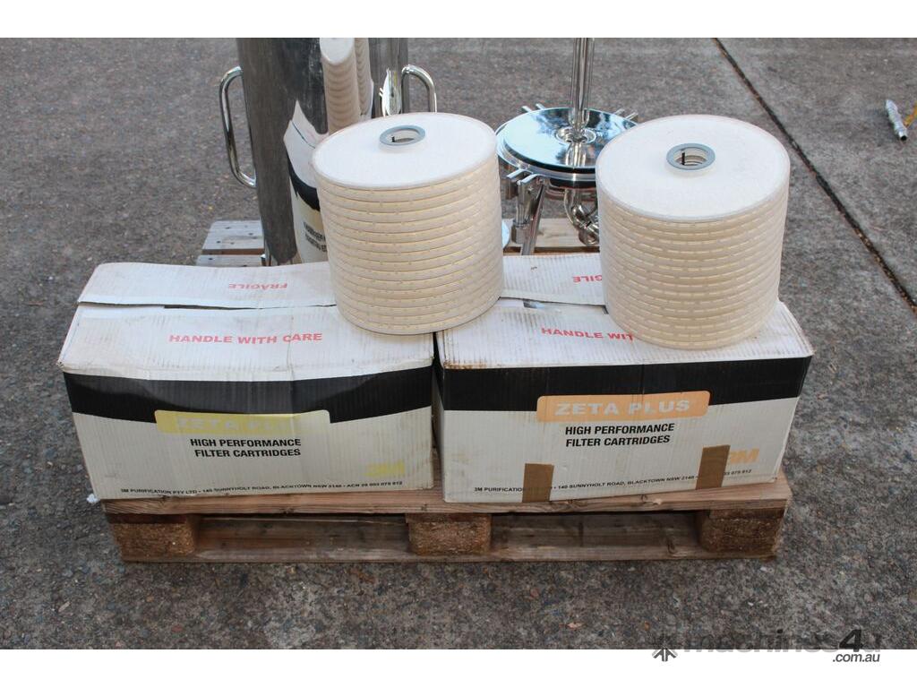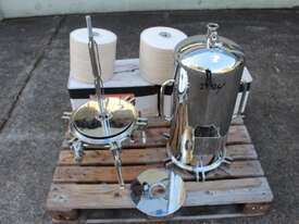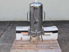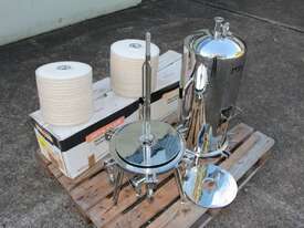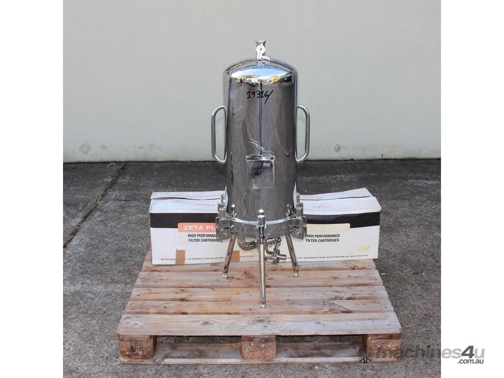 Stainless Steel Filter Housing with Cartridge, "CUNO" model 12ZP2, design pressure 1000Kpa, design temperature 100 deg C, material grade SS316/1.4404, internal dimensions: 300mm dia x 600mm deep, 25mm inlet and outlet