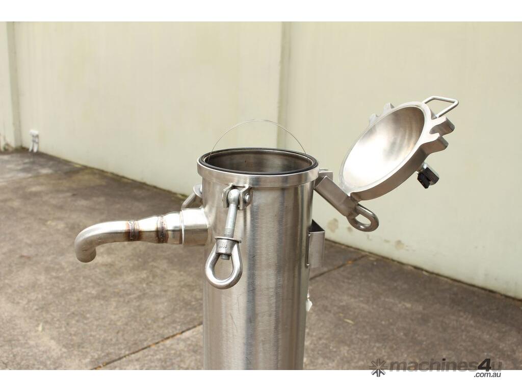 Stainless Steel Filter, internal dimensions: 190mm dia x 900mm deep, 50mm inlet and outlet, 3mm dia perforated SS strainer basket