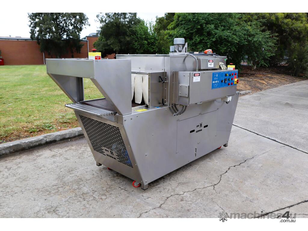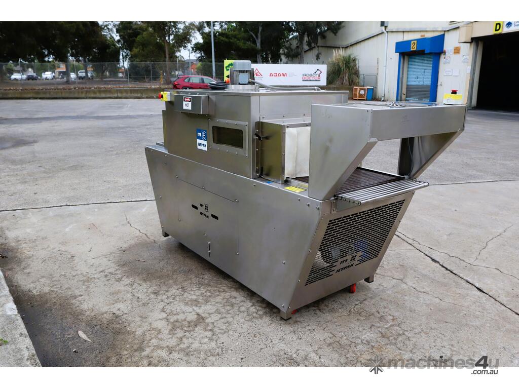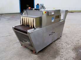 Industrial stainless steel heat shrink tunnel in great condition, designed for reliable, consistent shrink wrapping of products in a variety of film types. Built to streamline packaging processes and deliver tight, even shrink for retail ready, multipacking, or transport secure packaging.