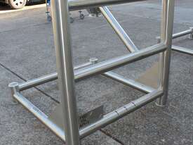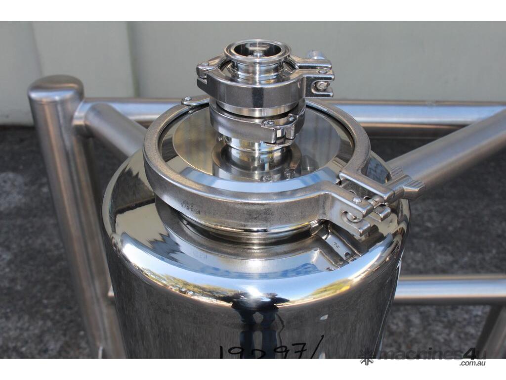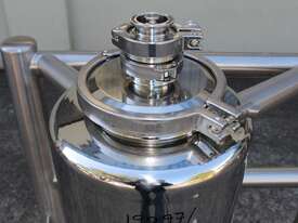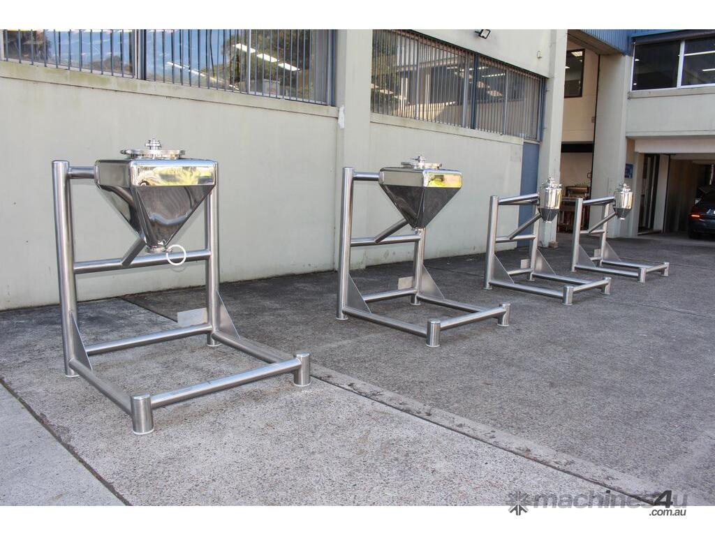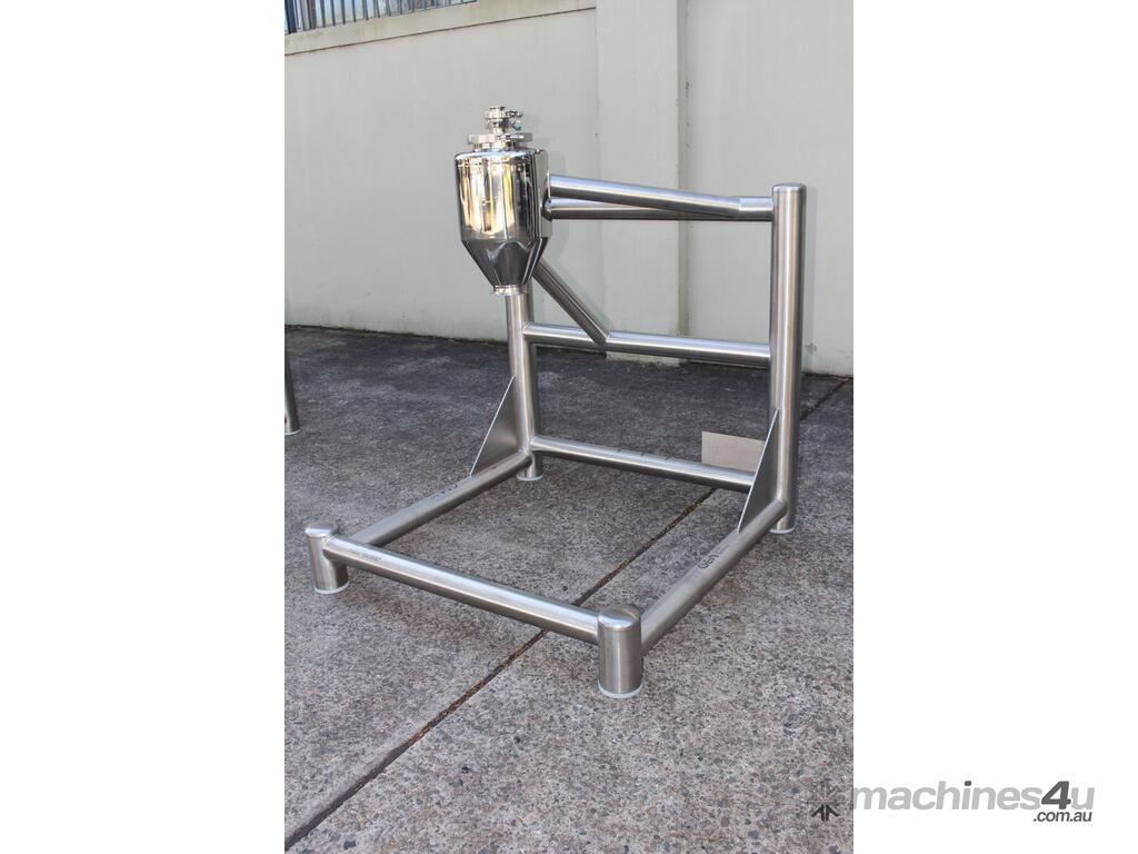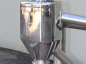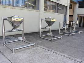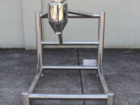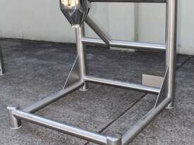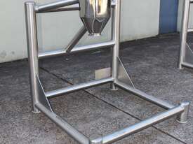 Stainless Steel Hopper with Stand, "GEA", capacity 15L, with one way inlet valve on top, 100mm dia discharge, stand dimensions 113 x 113 x 110 cm