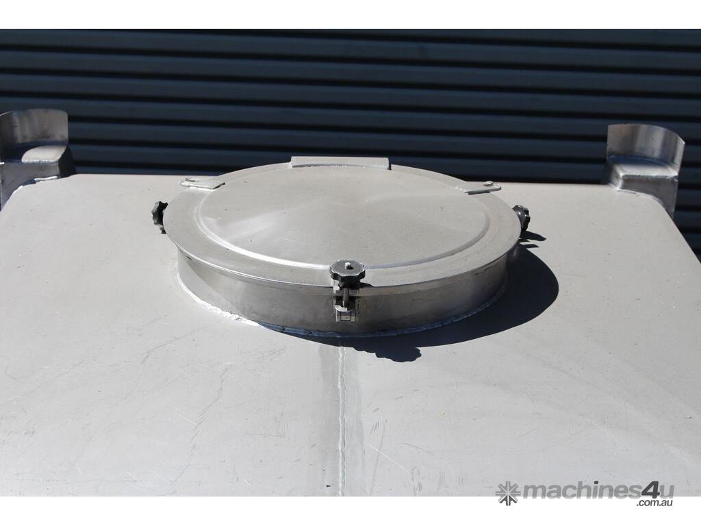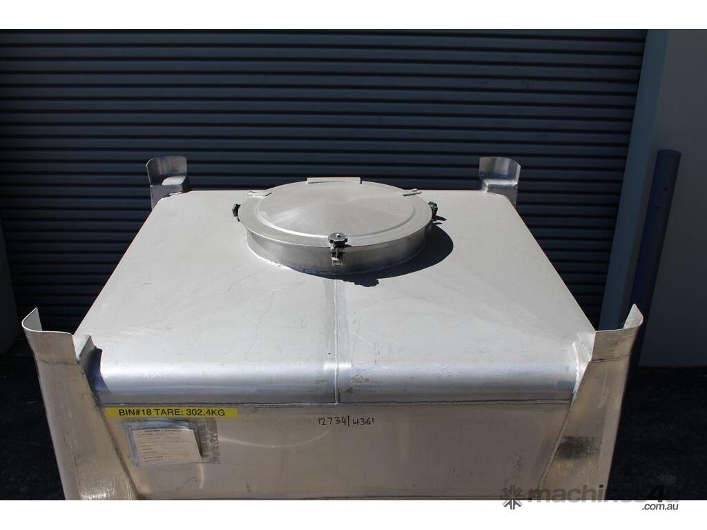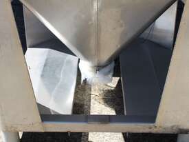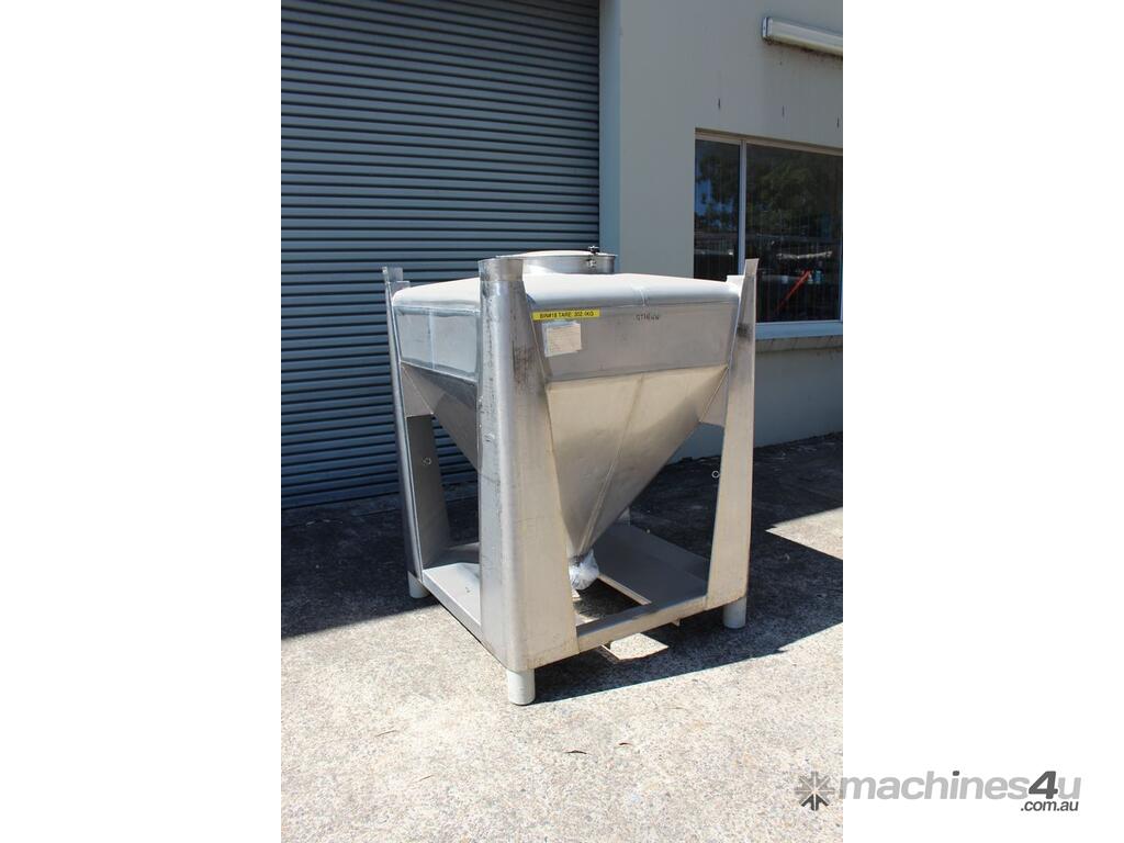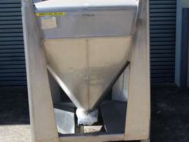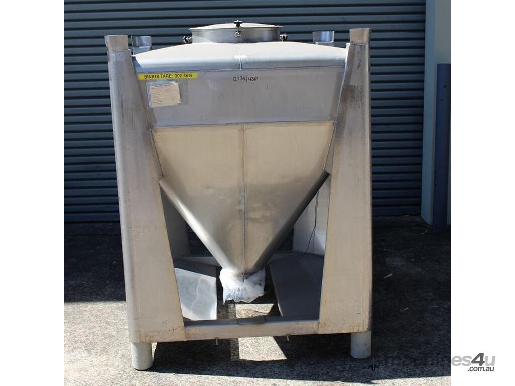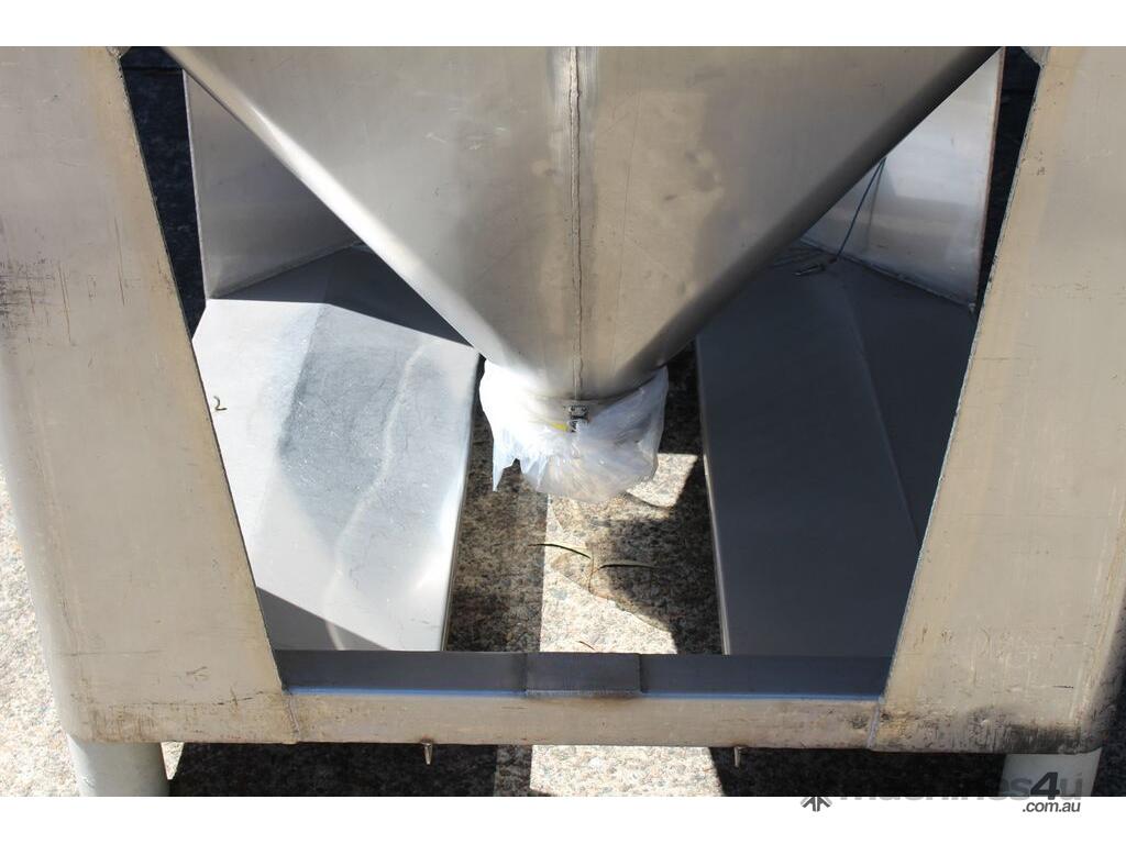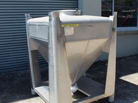 Stainless Steel Stackable Hopper, "Fallsdell", Capacity: 700L, 1200mm x 1200mm x 280mm deep straight wall with a 900mm deep cone, overall height 1650mm, totally enclosed with manway, conical bottom with a 180mm dia centre bottom outlet, stainless steel frame, SS316