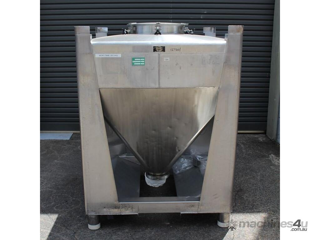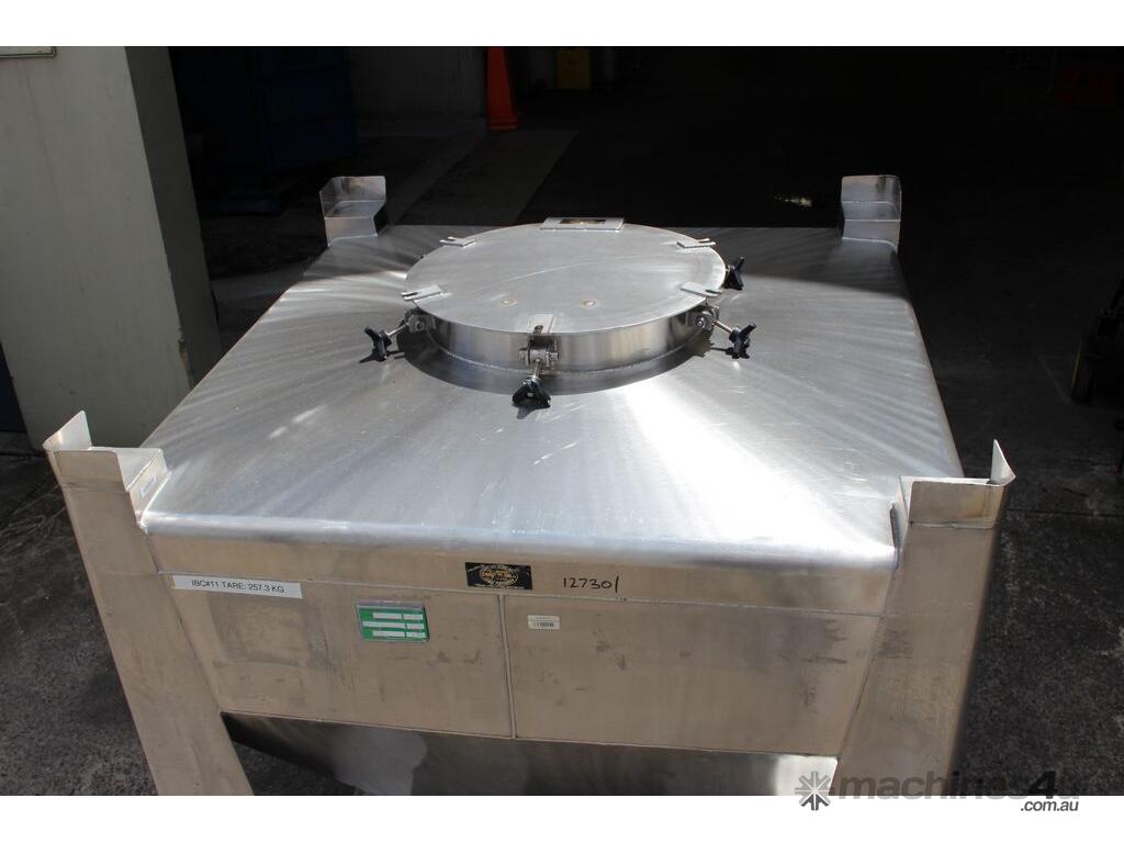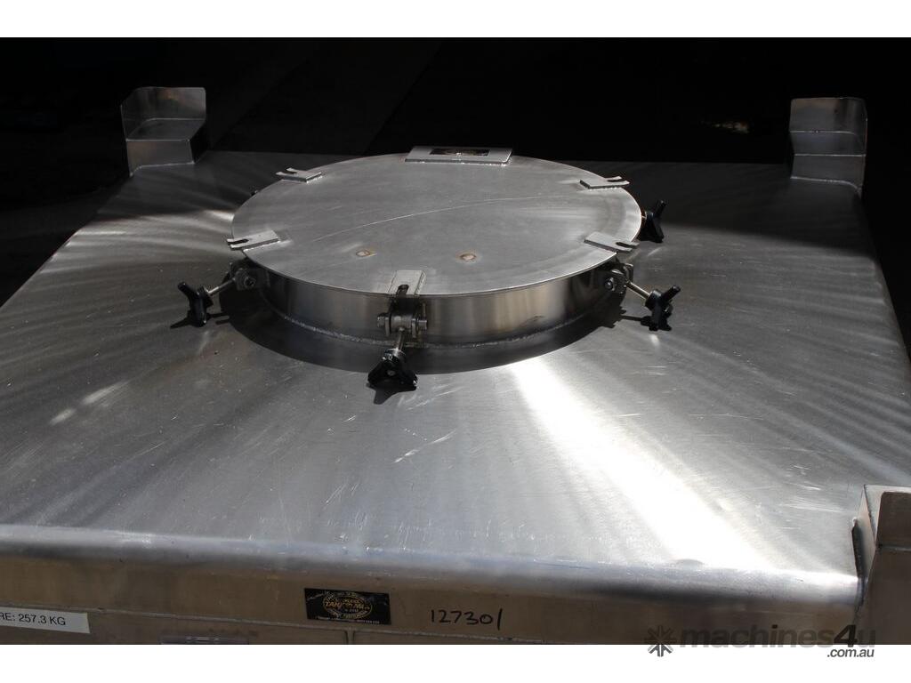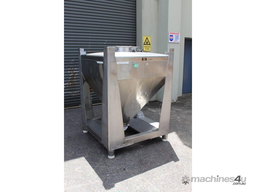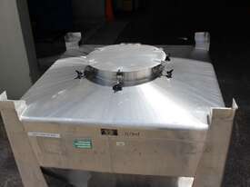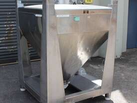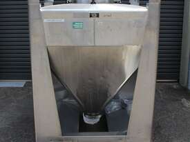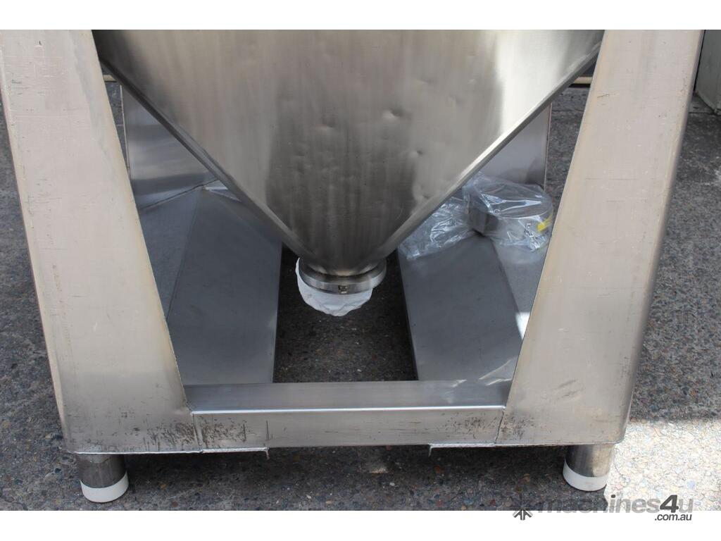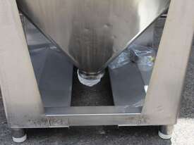 Stainless Steel Stackable Hopper, "Fallsdell", Capacity: 700L, 1200mm x 1200mm x 280mm deep straight wall with a 900mm deep cone, overall height 1650mm, totally enclosed with manway, conical bottom with a 180mm dia centre bottom outlet, stainless steel frame, SS316